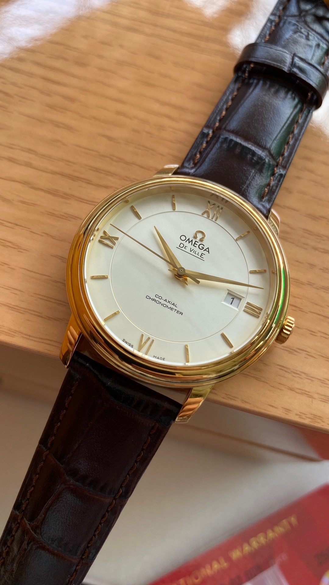 Home • Watch • A+ Factory Omega De Ville 39.5mm upgraded V2 available. Custom movement, genuine calendar font, improved dial indexes. Choice of steel, alligator, or calfskin straps. Updated hallmarks.