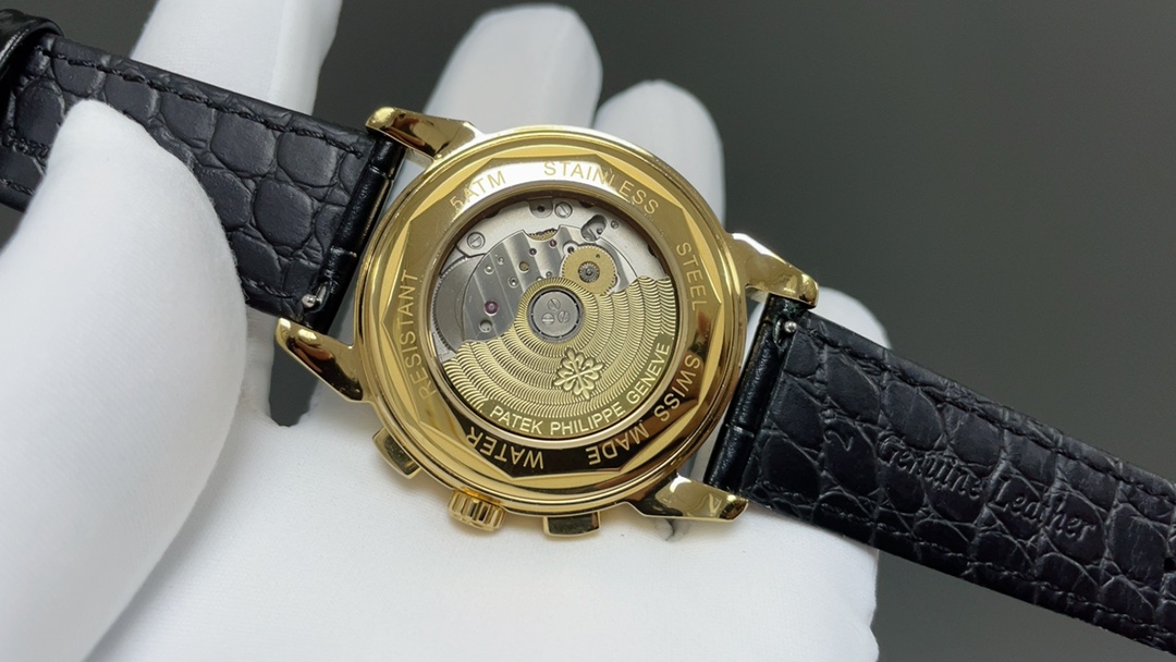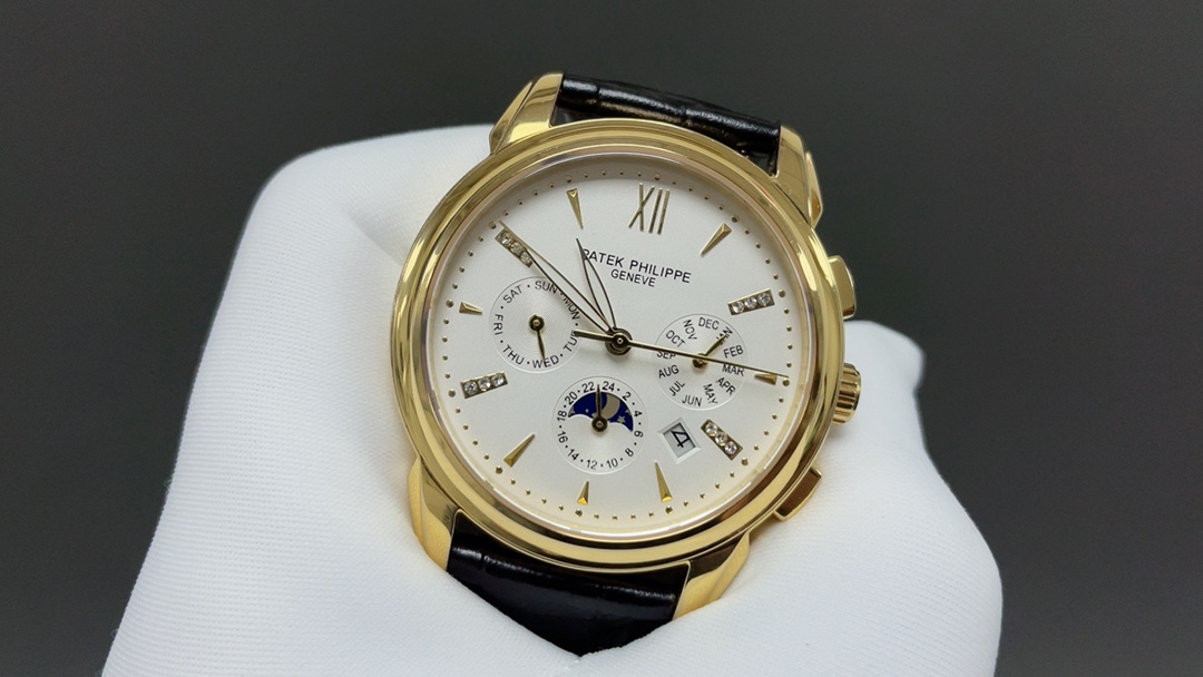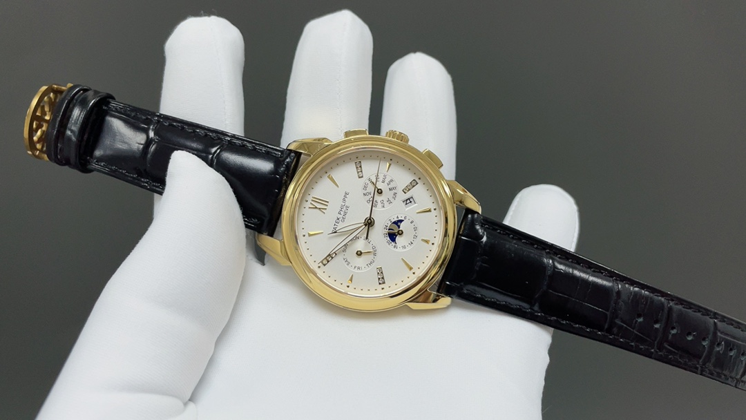 Taiwan factory 2025 Patek Philippe perpetual calendar watch. 41mm, multi-function mechanical movement, Italian leather strap, butterfly clasp.