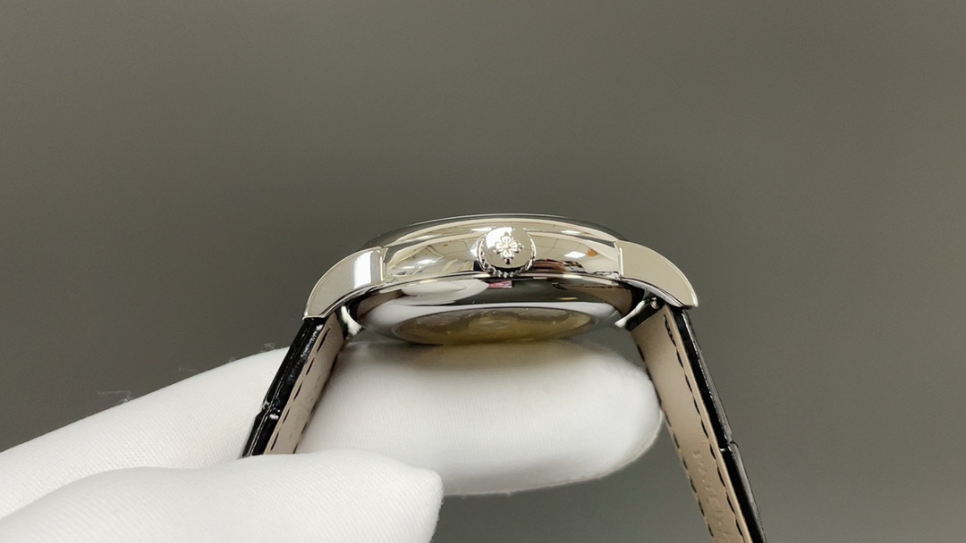TW Factory Patek Philippe 5078 watch. 40mm size, 11.05mm thickness. Genuine model case, upgraded dial, sapphire crystal. Custom automatic movement. Italian calfskin strap. Exquisite craftsmanship, elegant and classic.