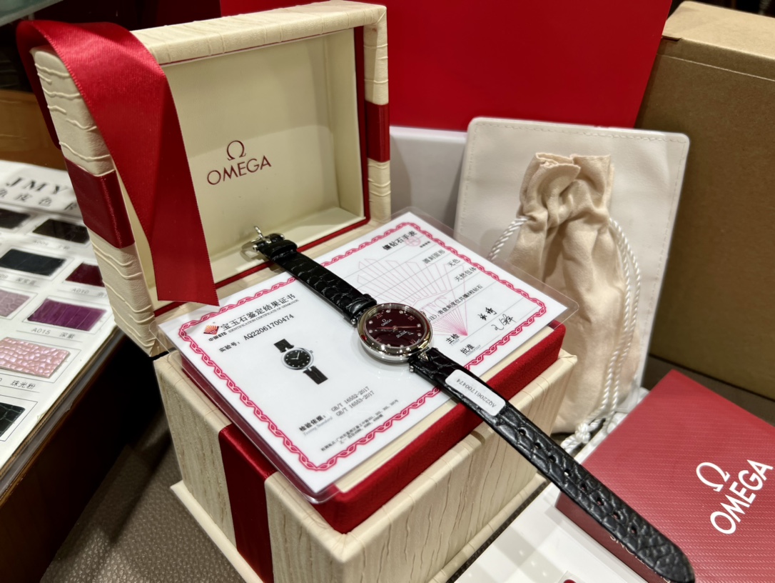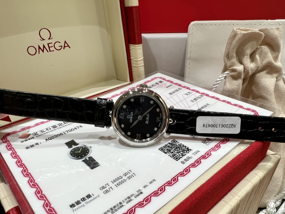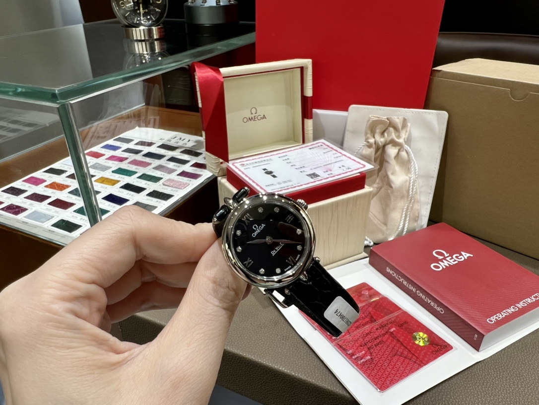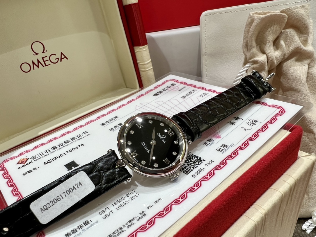 Omega launches elegant De Ville "Dewdrop" watch. 27.4mm steel case, mother-of-pearl dial with diamonds, alligator strap, 4061 movement. GTC certificate.