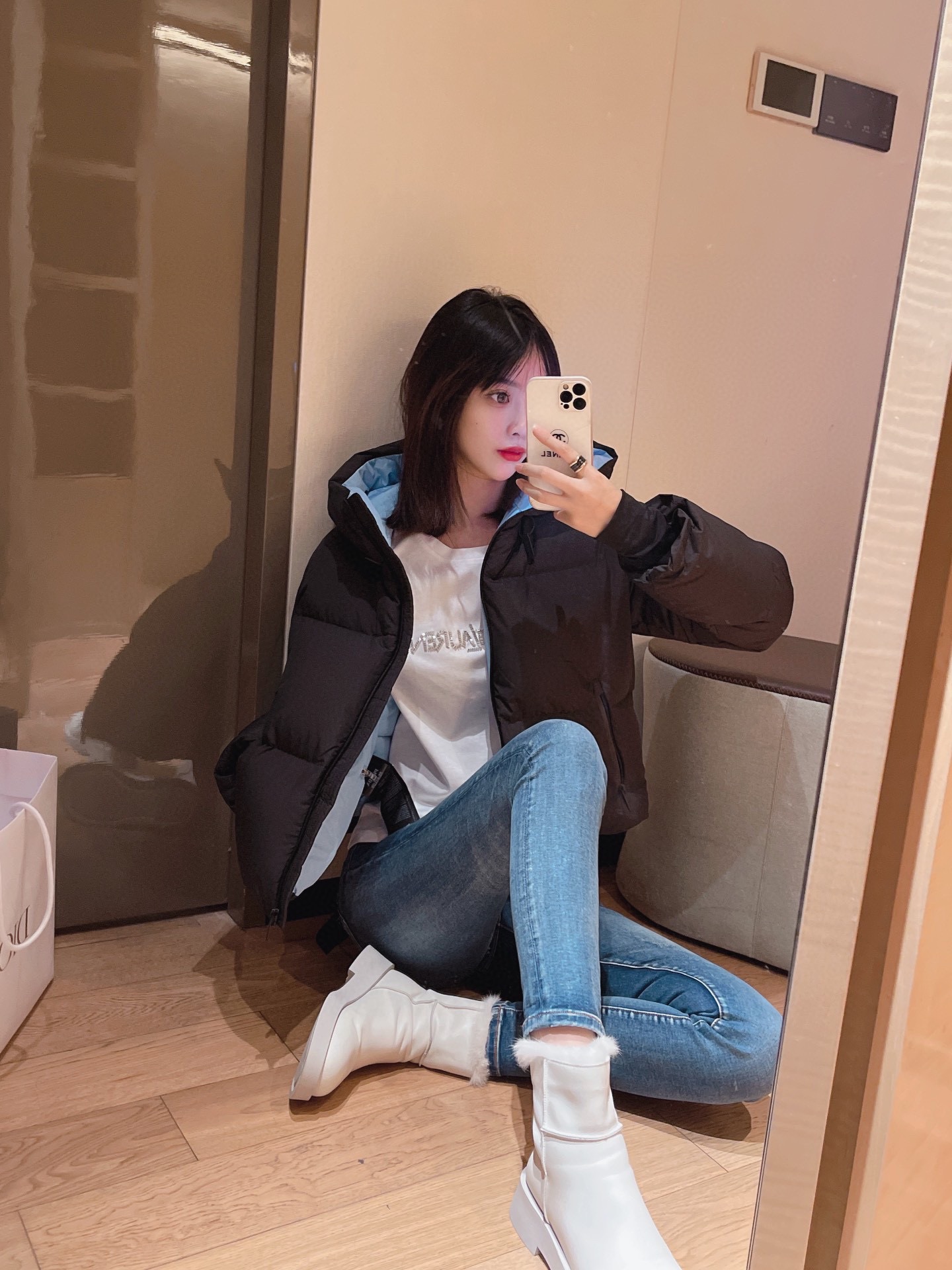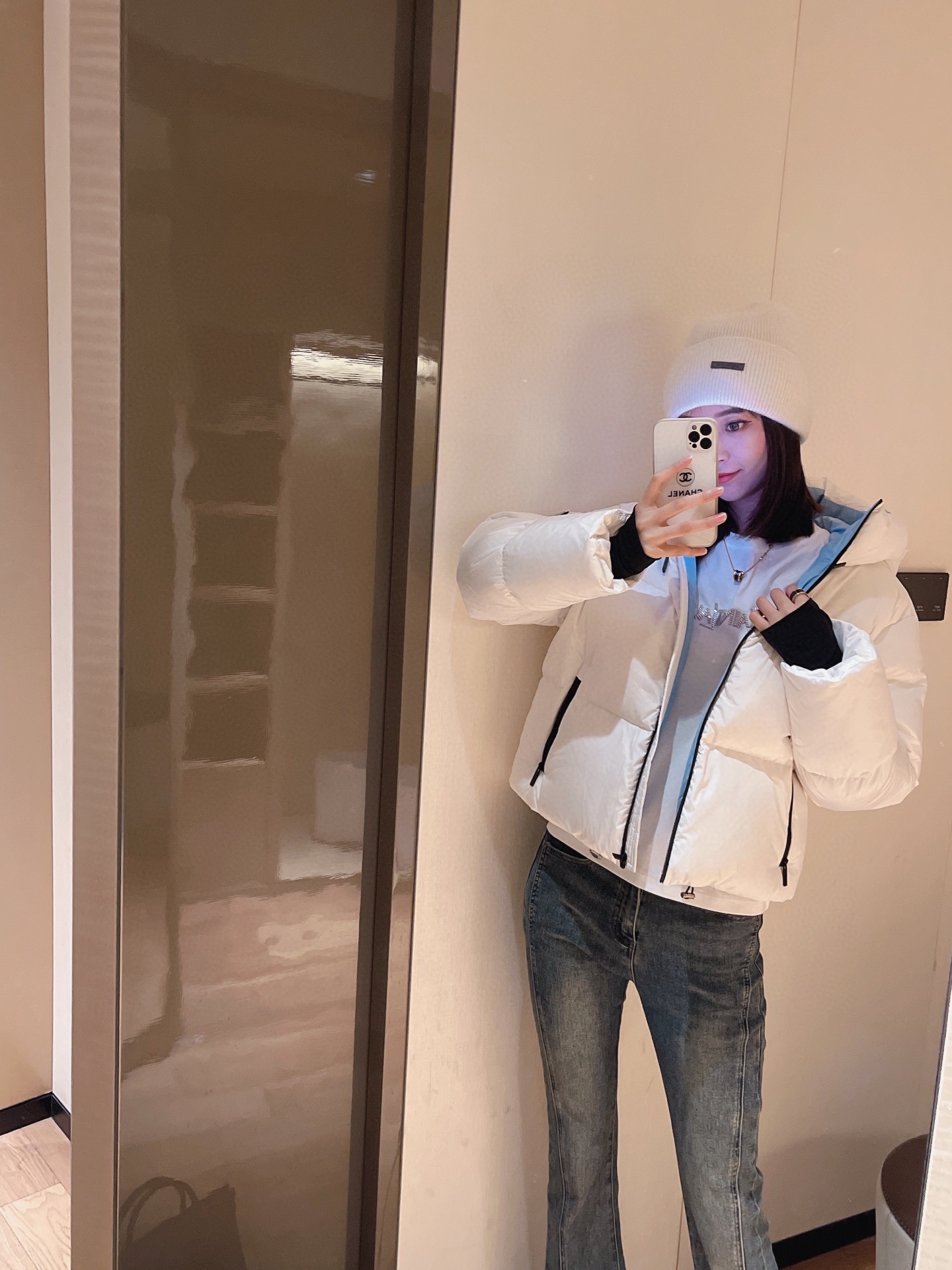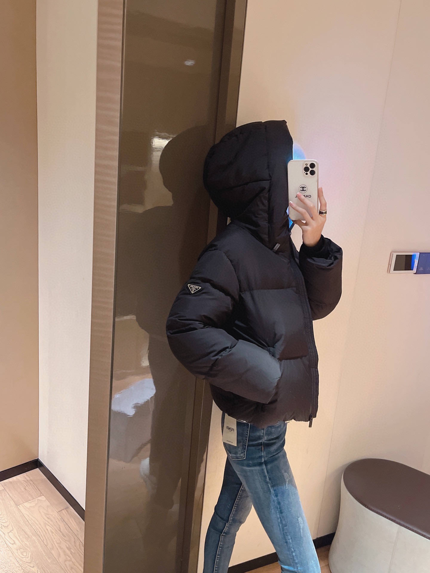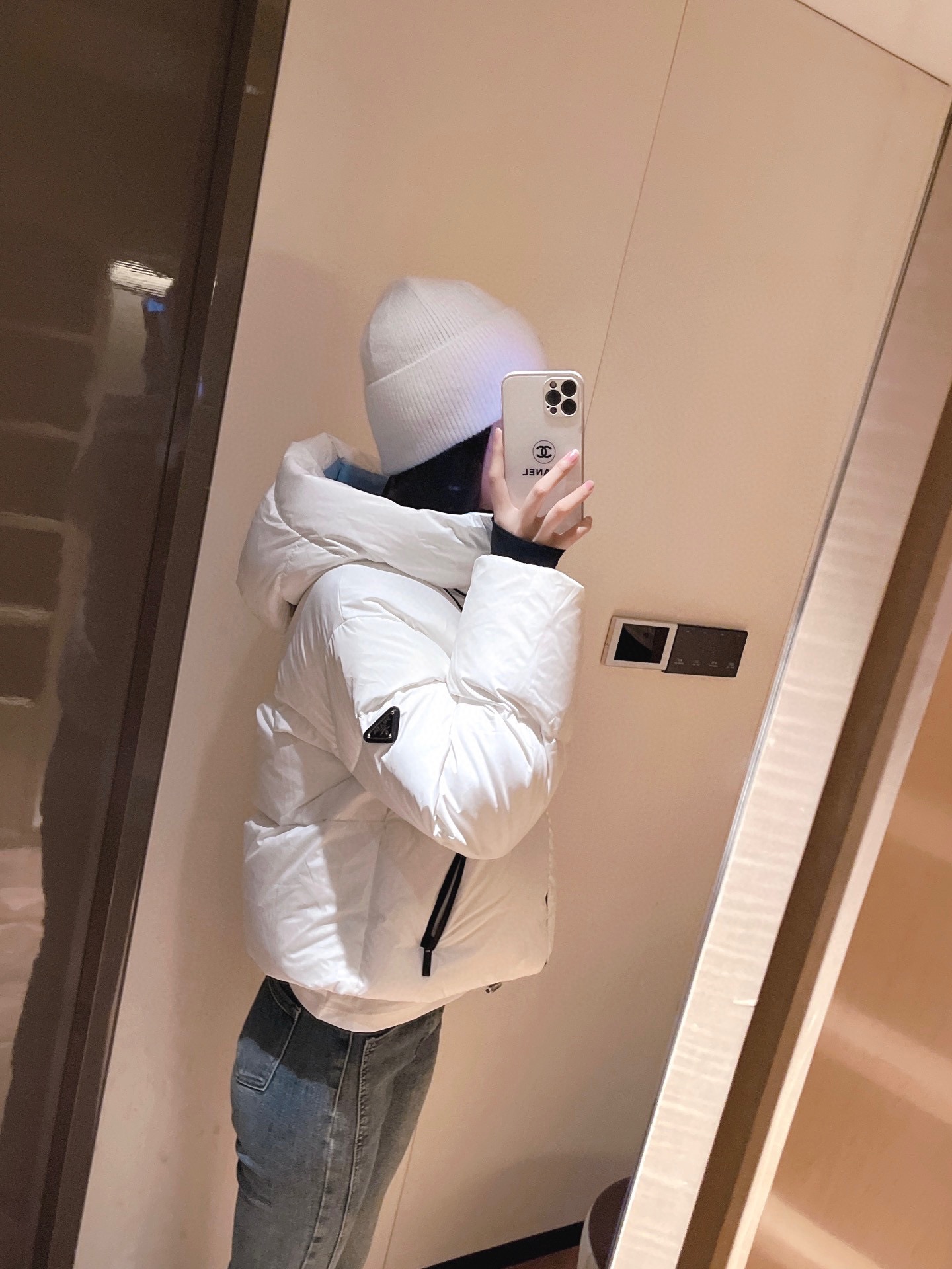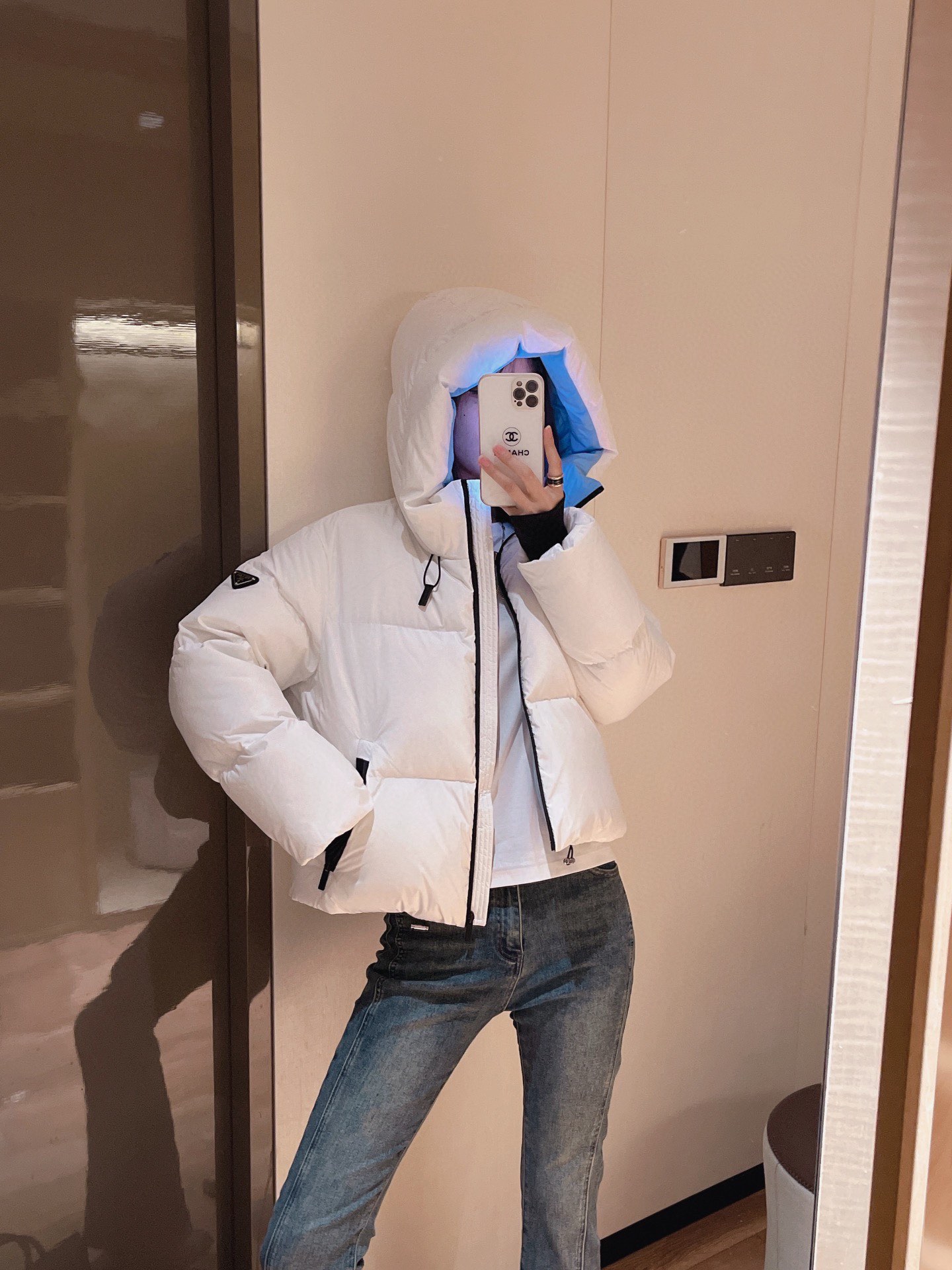 Top-grade down Prada triangle logo style 90% white goose down short down jacket