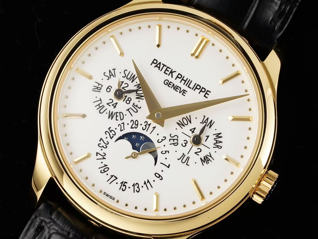 Home • Watch • 3K's new Patek Philippe 5327/5140 watch features a 40mm case, perpetual calendar, moon phase, and 24-hour display. Powered by Cal.240 Q movement, it includes quick-adjust buttons and a leather strap. A classic, elegant timepiece.