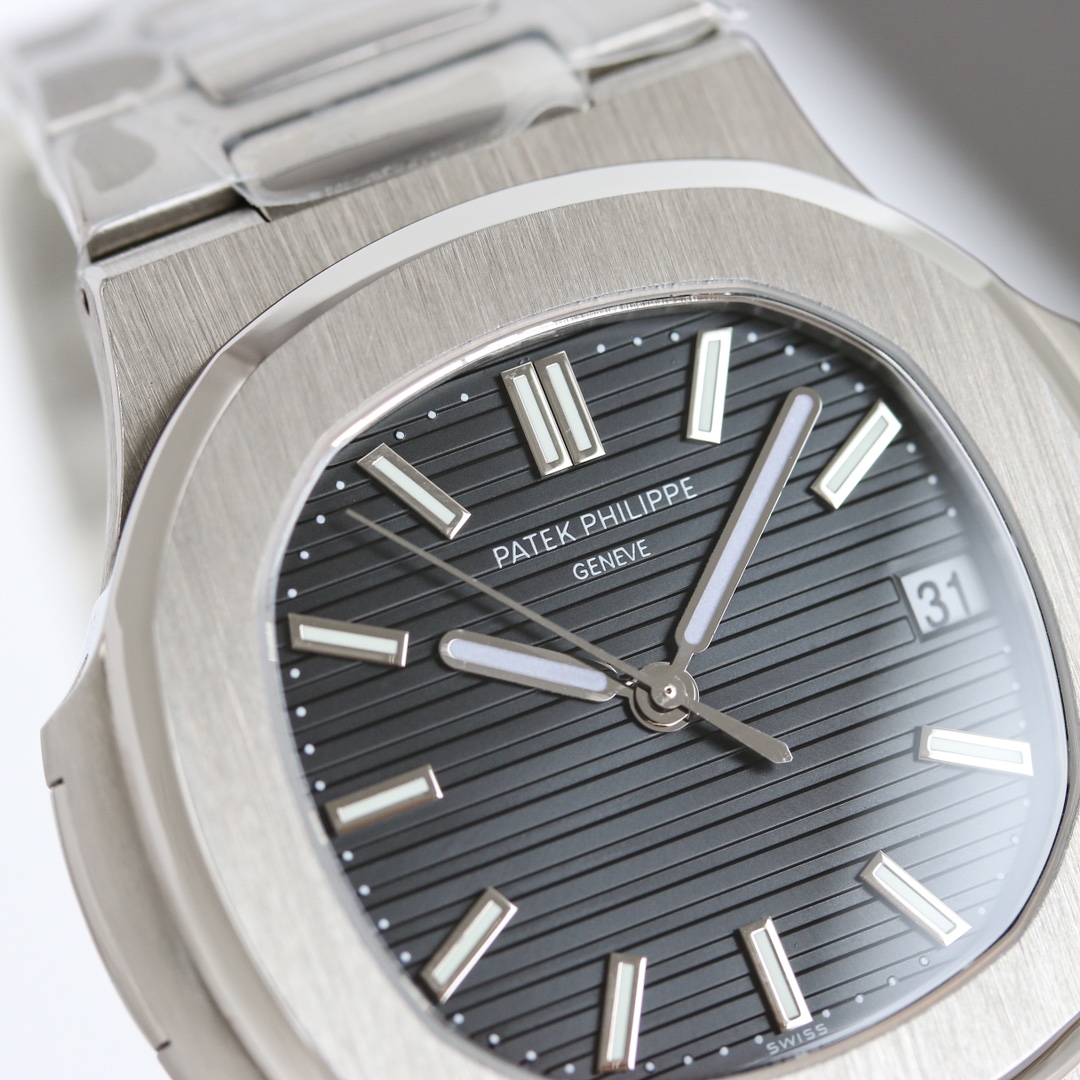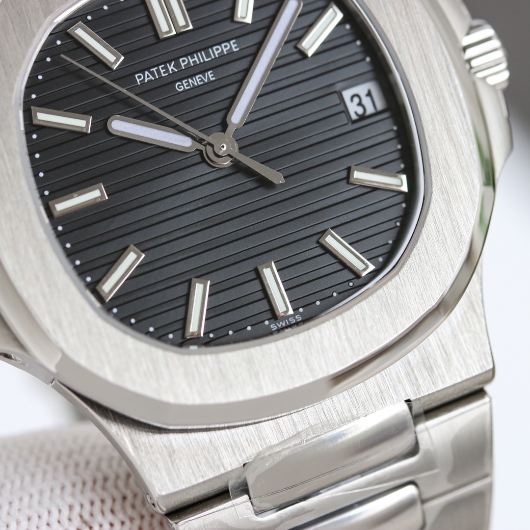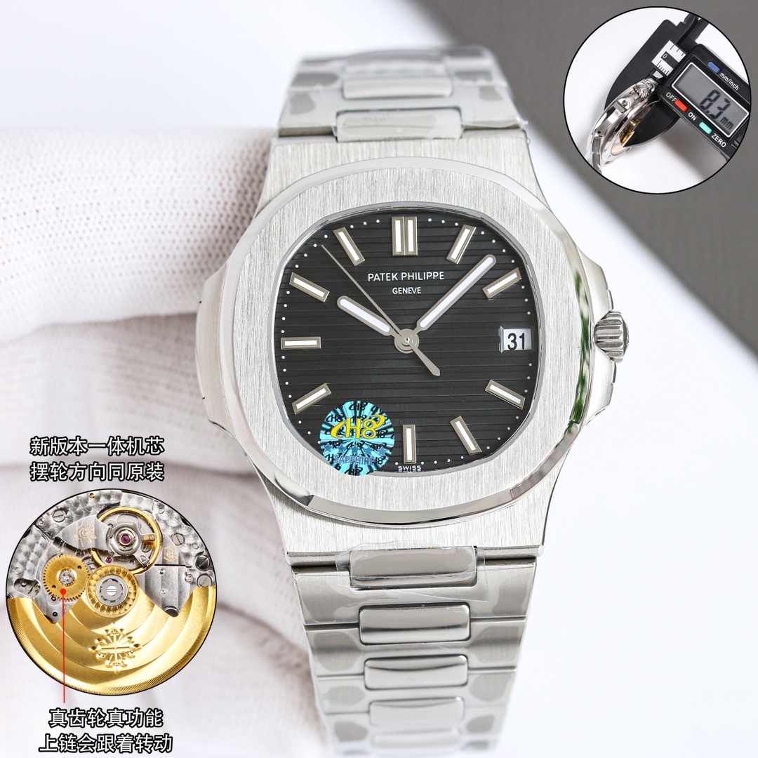 OMF Patek Philippe Nautilus upgraded: engraved movement, quieter rotor, 9015 to 324SC, brighter lume, authentic blue dial, aligned date, smooth crown, 8.3mm thin.