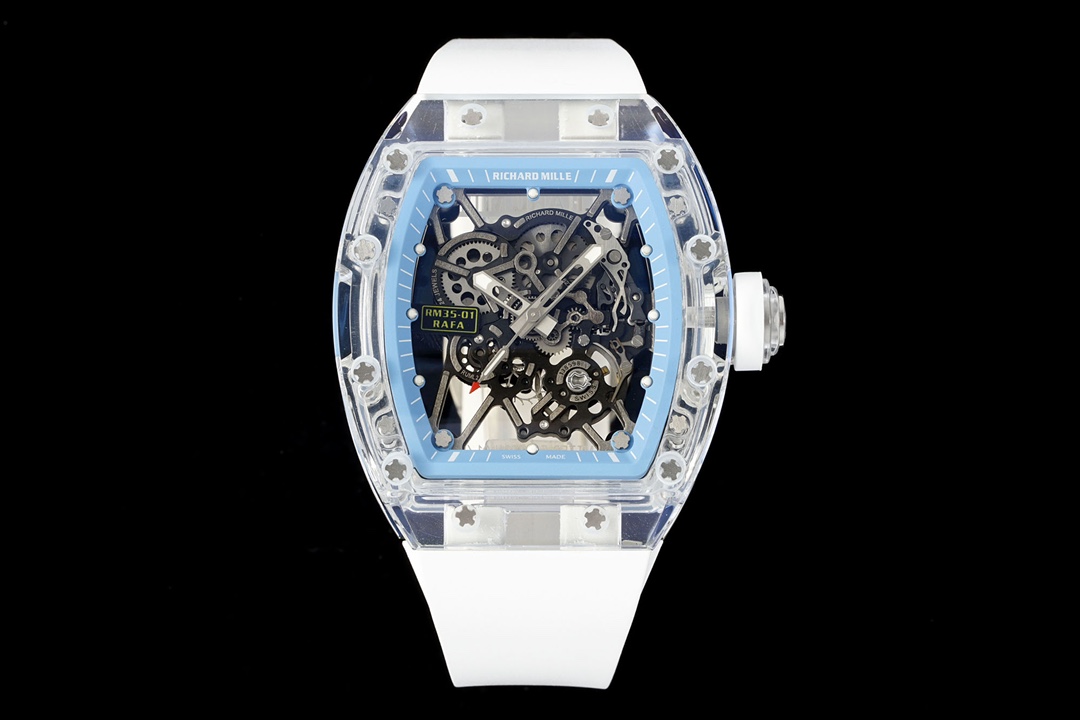 RICHARD MILLE RM35-01 with integrated RMUL3 movement. Crystal case, titanium screws, natural rubber strap. Size: 51mm x 42.7mm x 15.8mm.