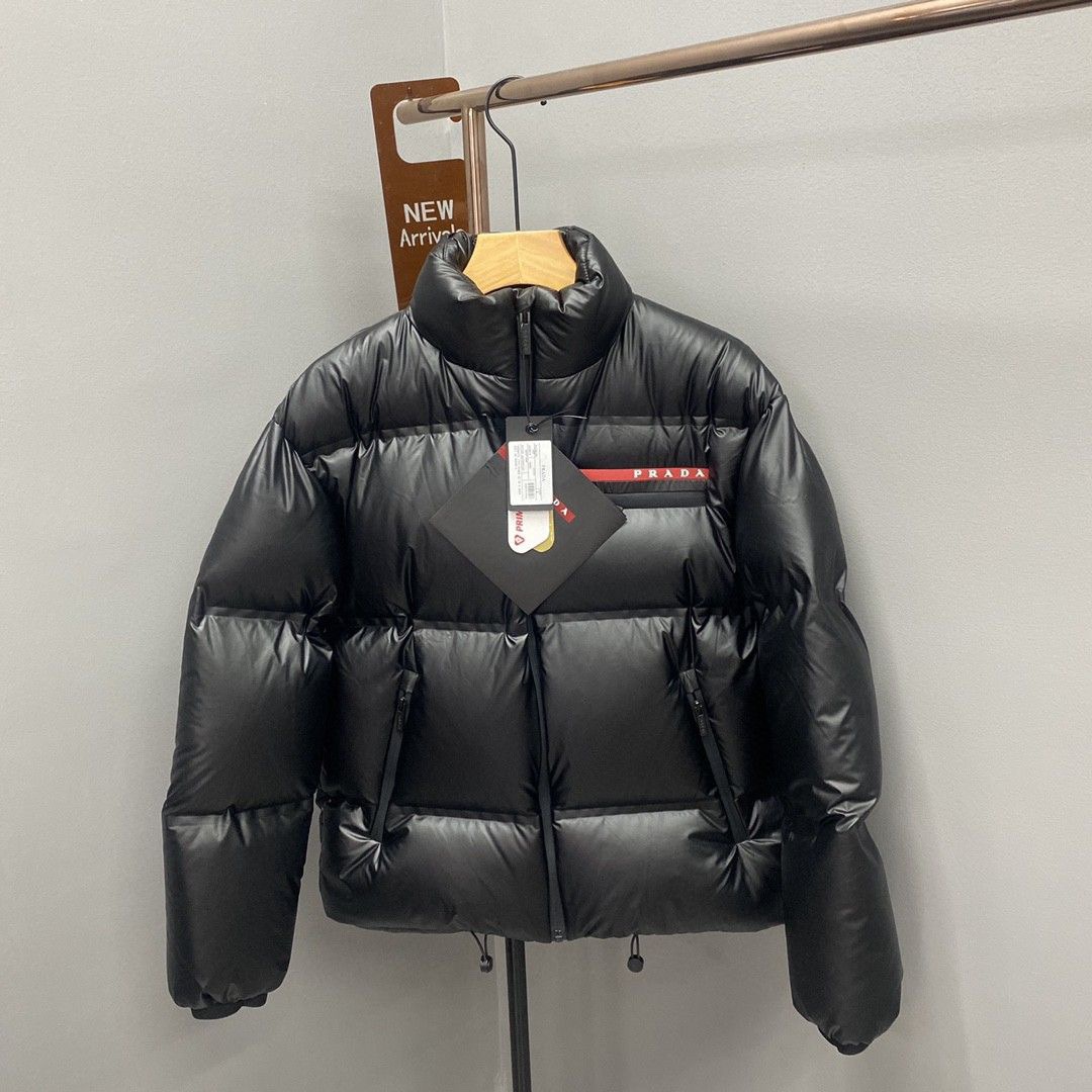 Guangzhou High Version Original Quality 23 Autumn Winter New PRADA Stand Collar Short Down Jacket