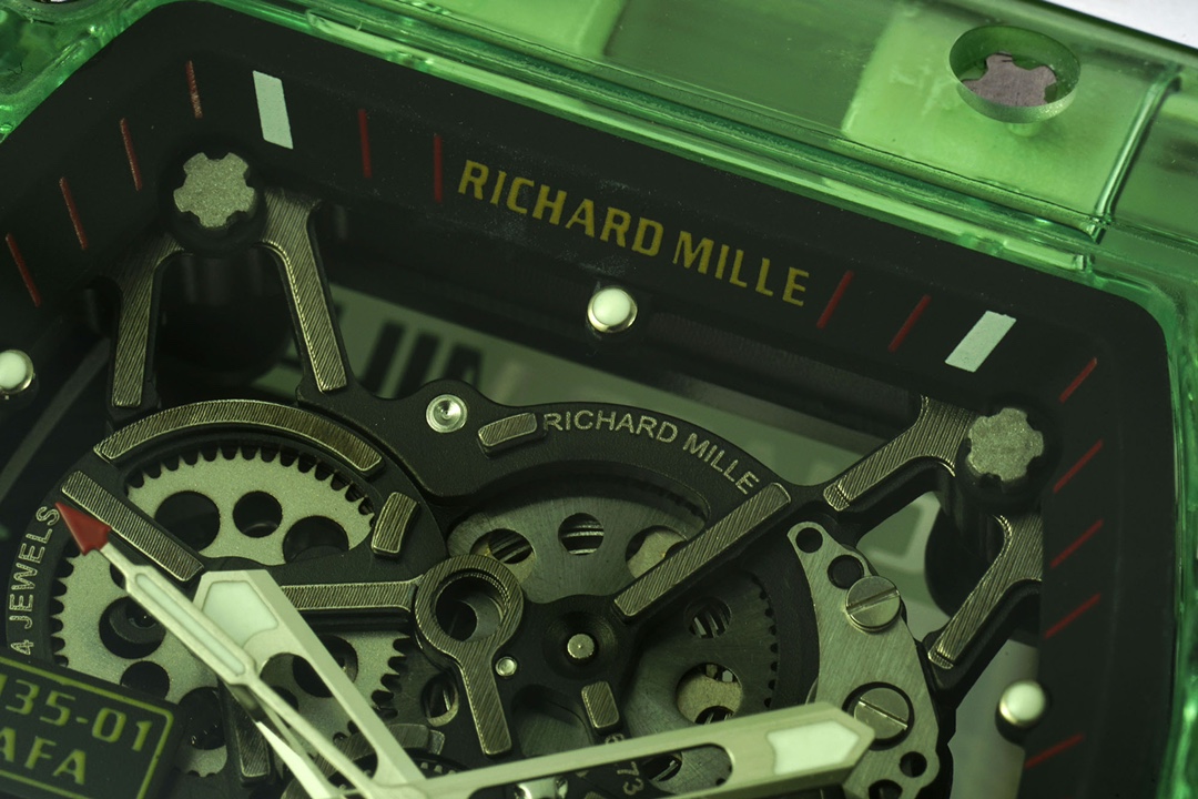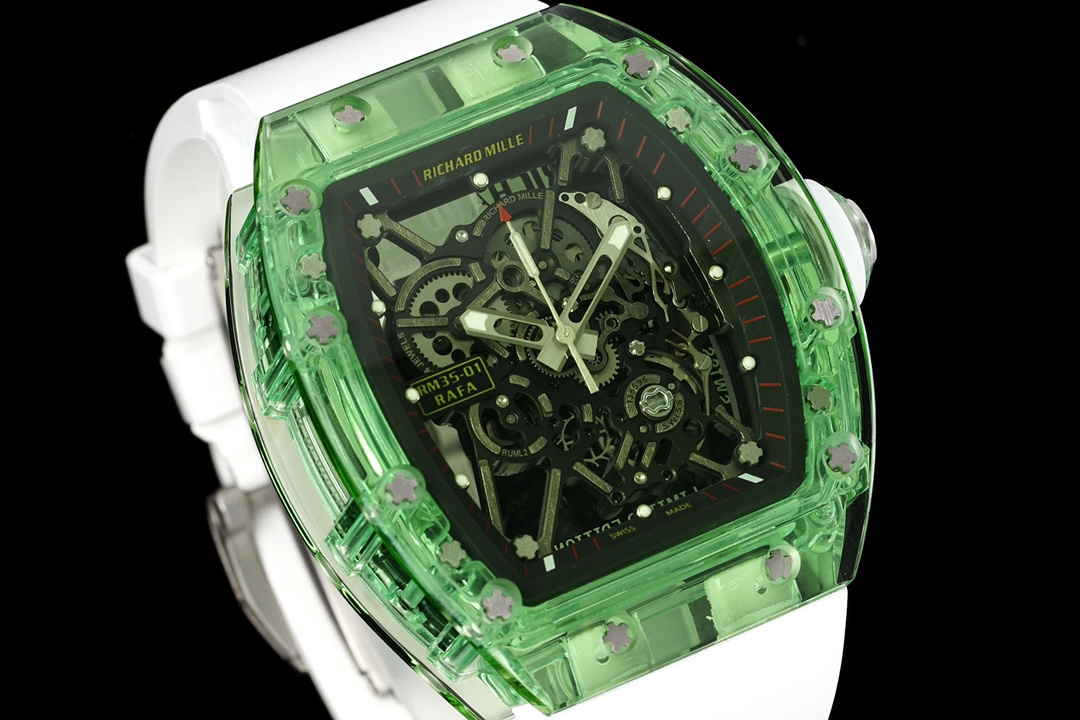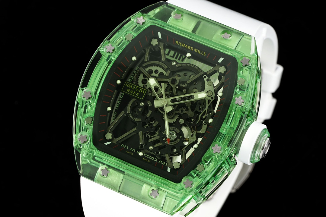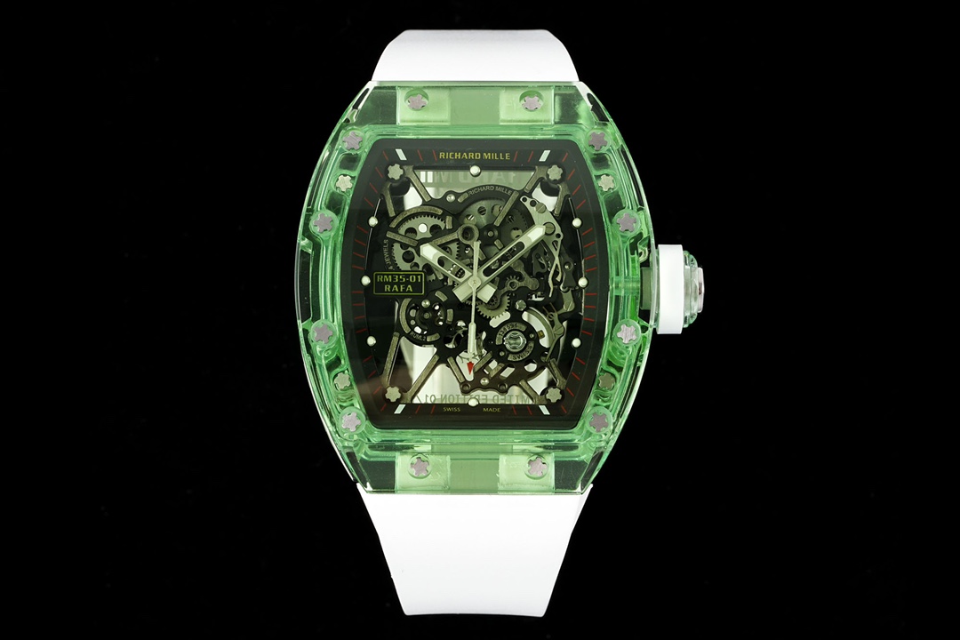 RICHARD MILLE RM35-01 with integrated RMUL3 movement. Crystal case, titanium screws, natural fluoroelastomer strap. Size: 51mm x 42.7mm x 15.8mm.
