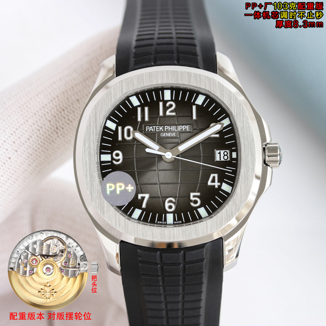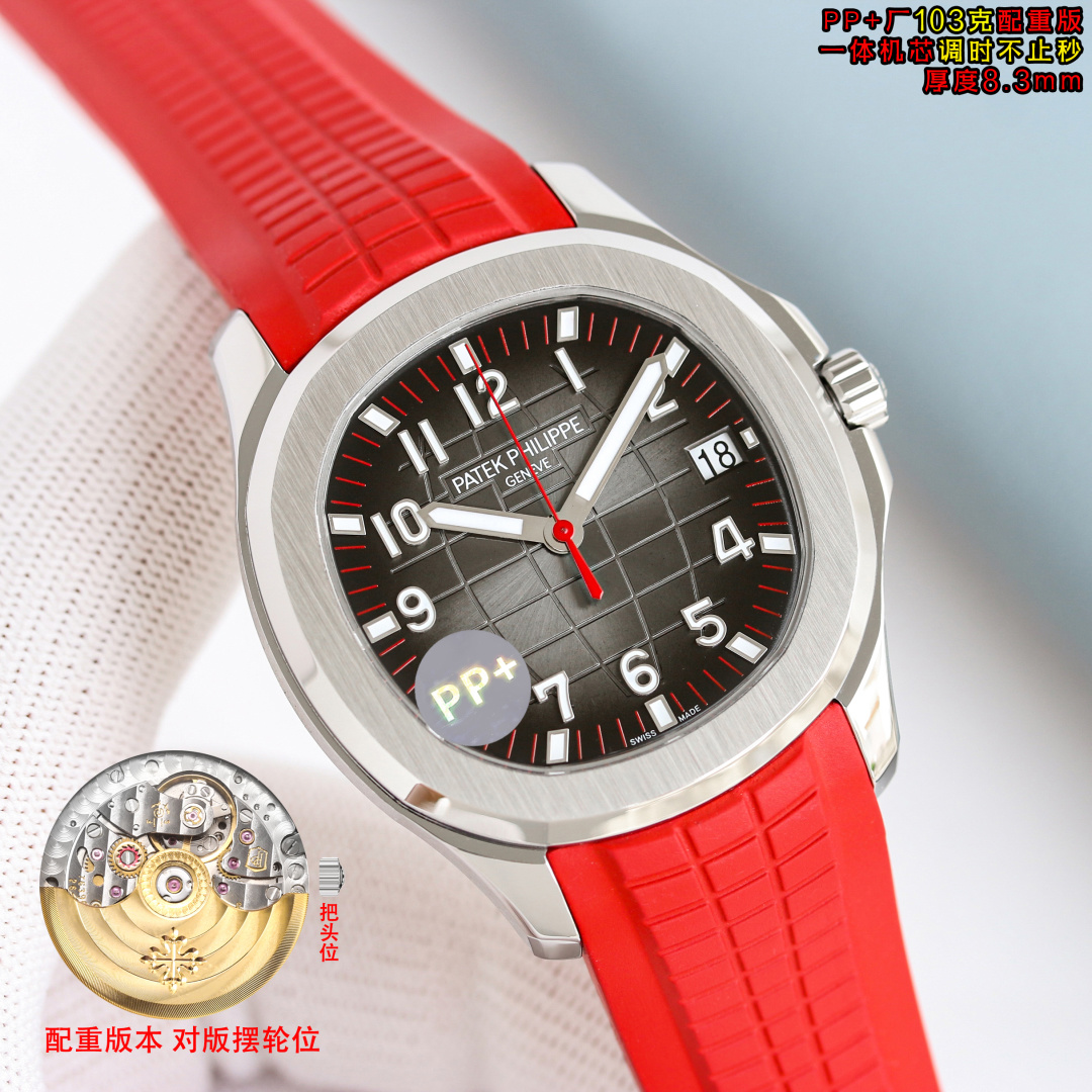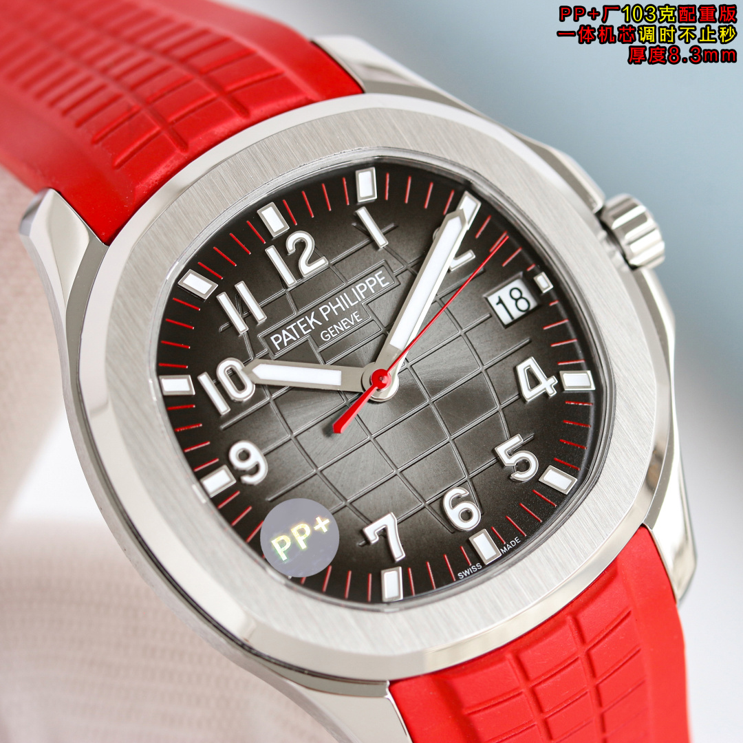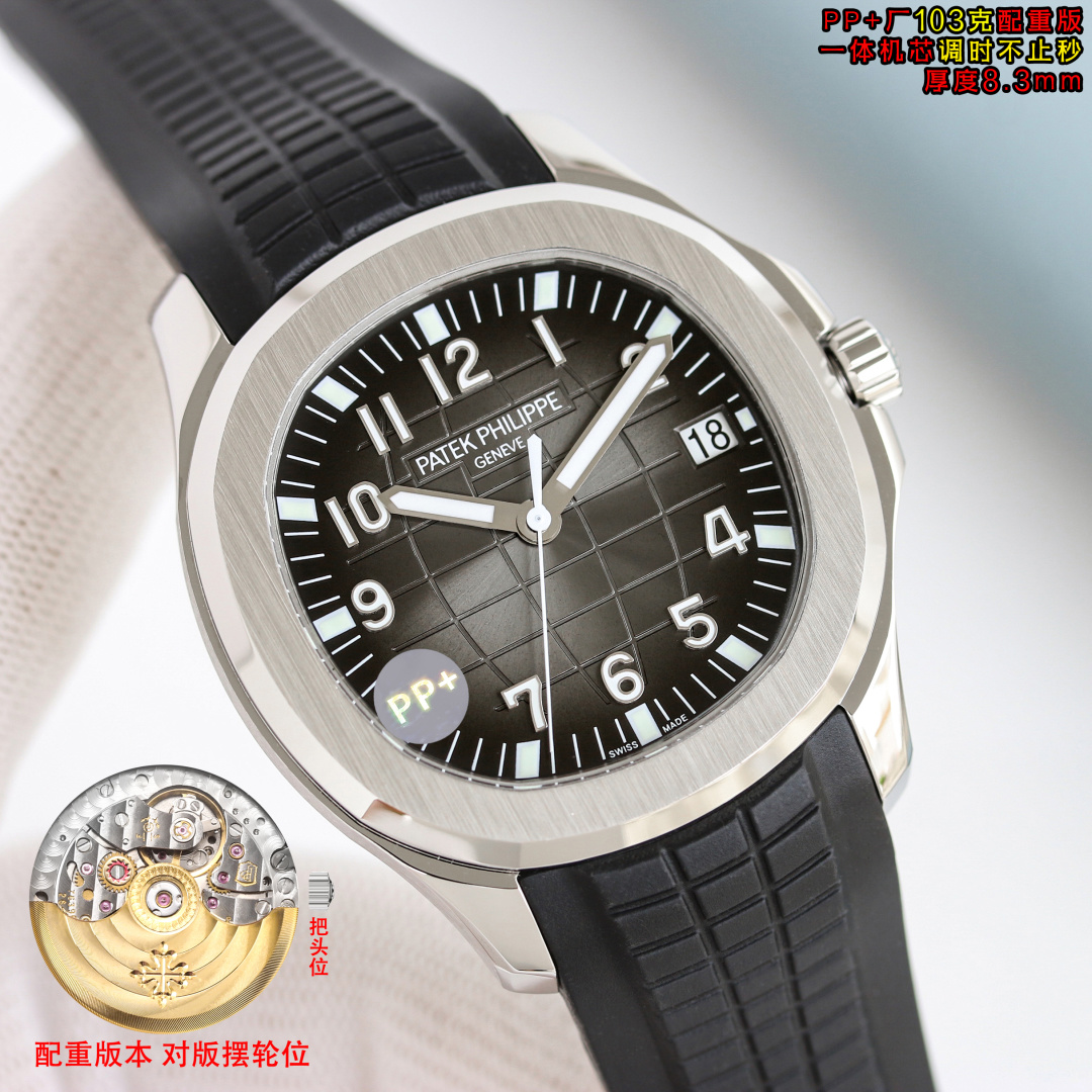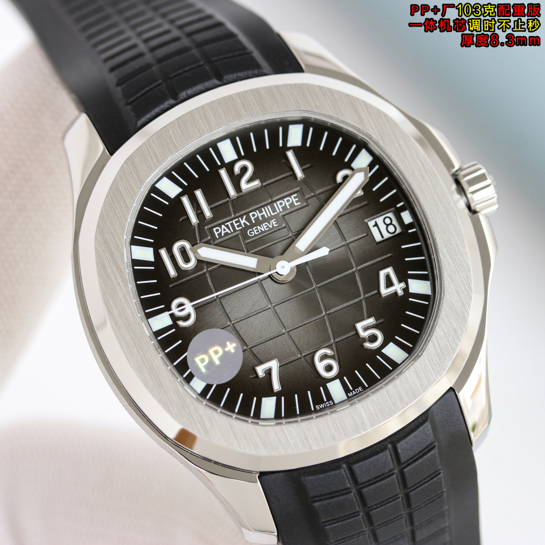 PP+ Factory 103g weighted ultra-thin 8.3mm watch with hacking seconds. Patek Philippe AQUANAUT 5167. 40mm case. 9015 movement modified to Cal.26-330 SC. Integrated case, gradient dial, luminous markers, fluor rubber strap, upgraded buckle.
