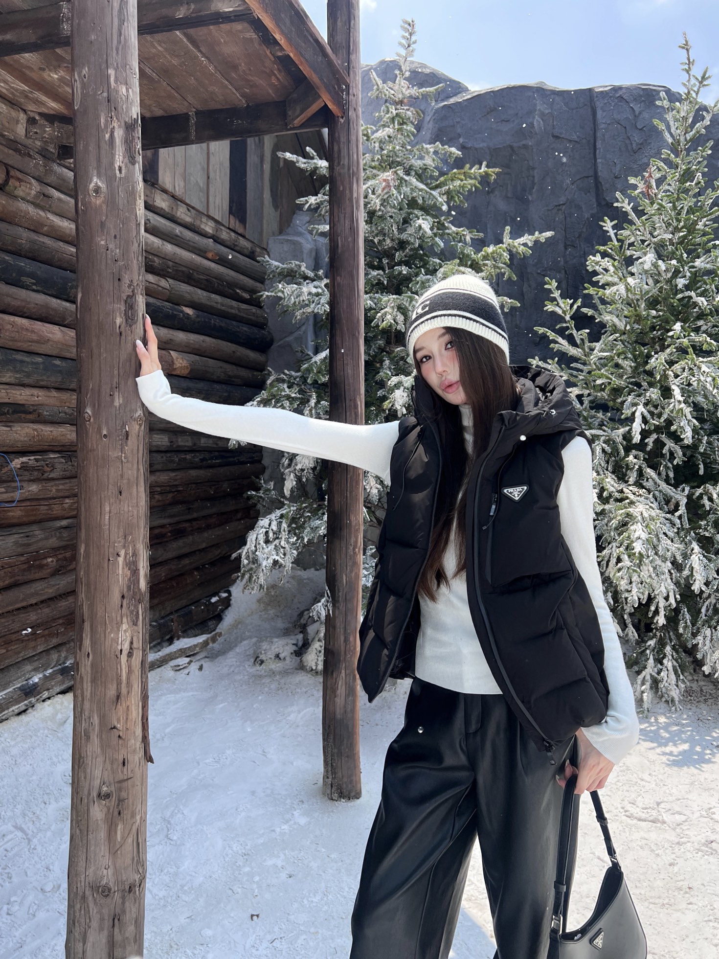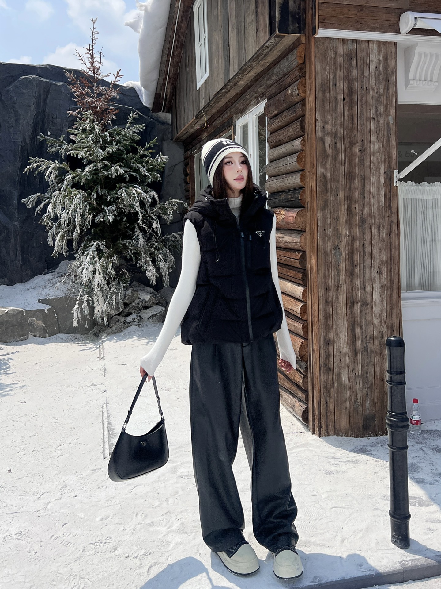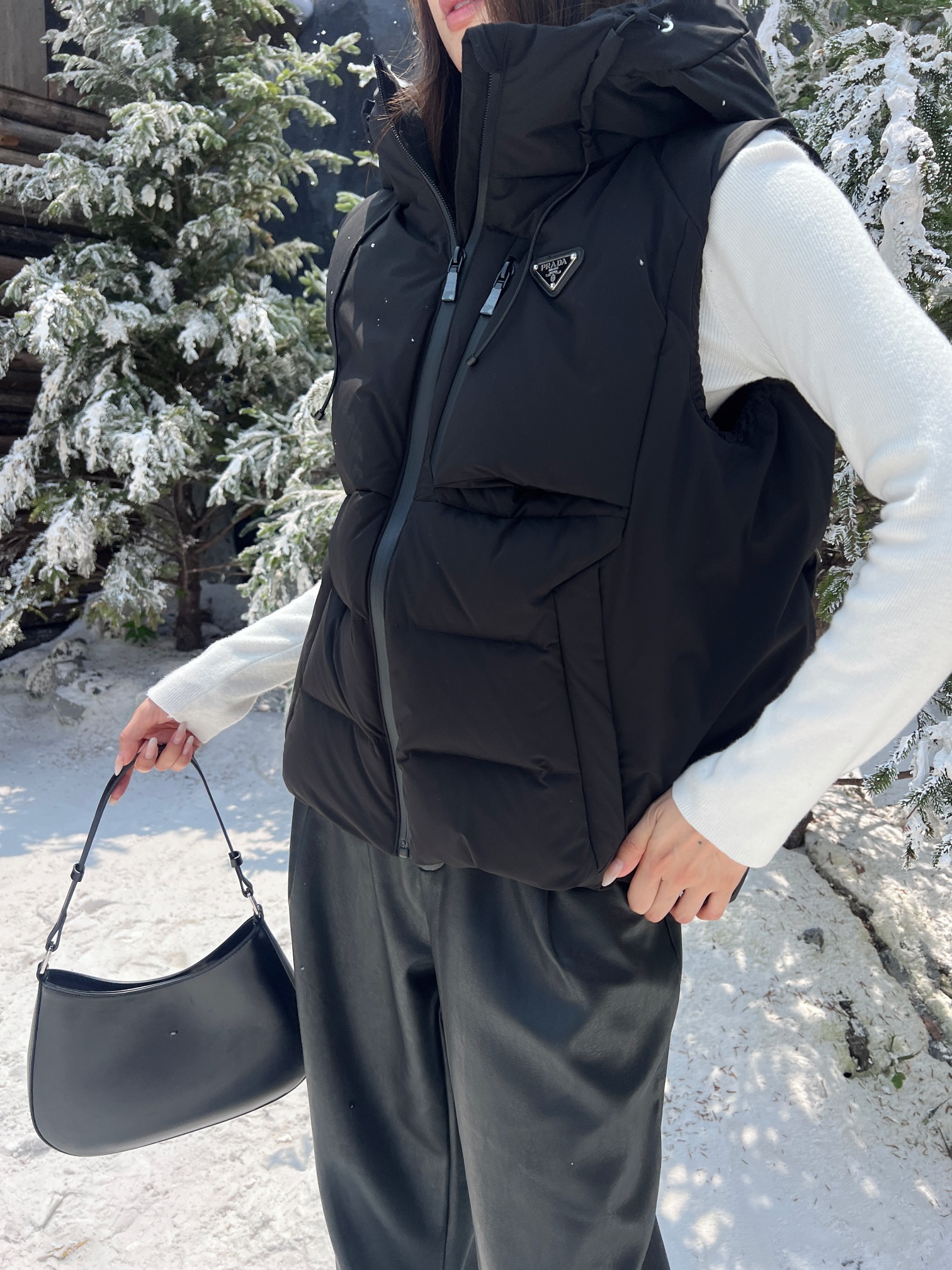 Guangzhou High Version Prada Fall/Winter Latest Triangle Logo Hooded Down Vest Classic Slightly A-Line Silhouette