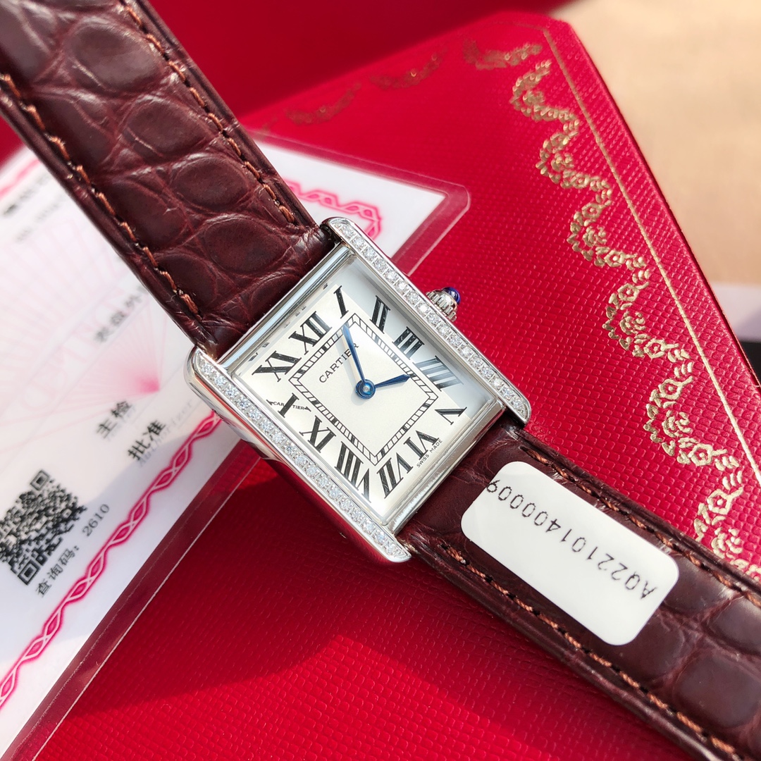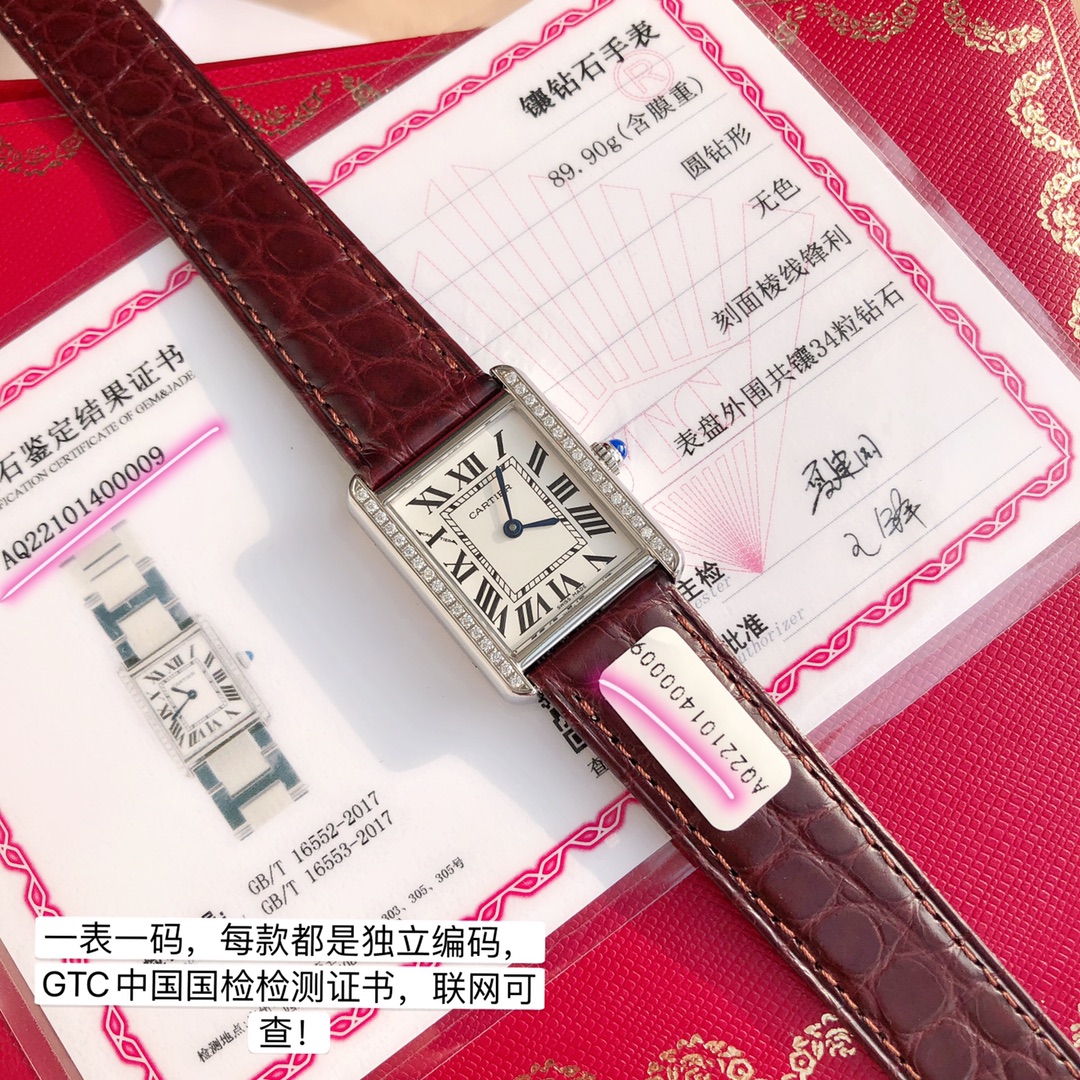Cartier Tank small alligator strap, 31mm*24mm, Swiss quartz, 34 VS1.1 diamonds. GTC certified. Top version, genuine materials.