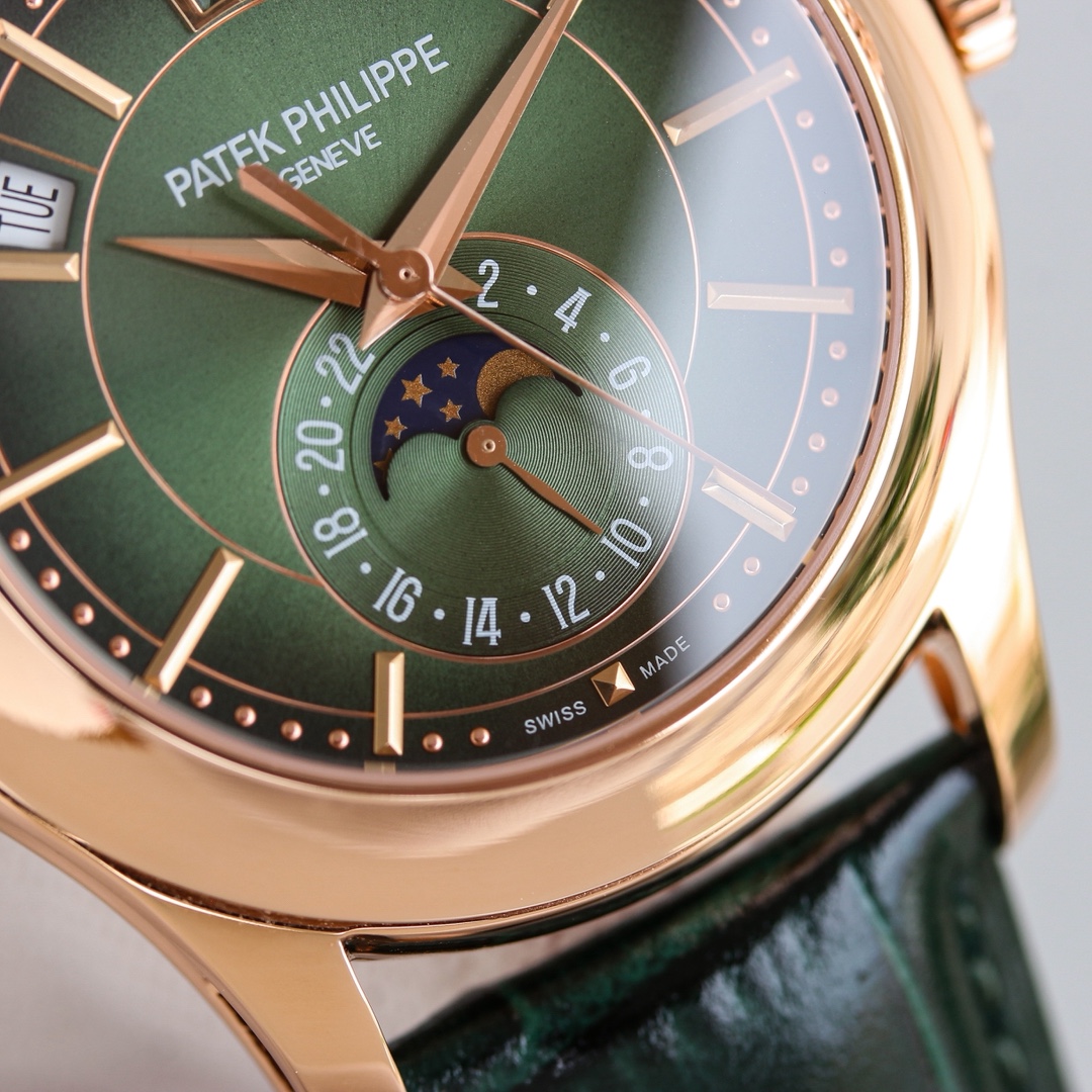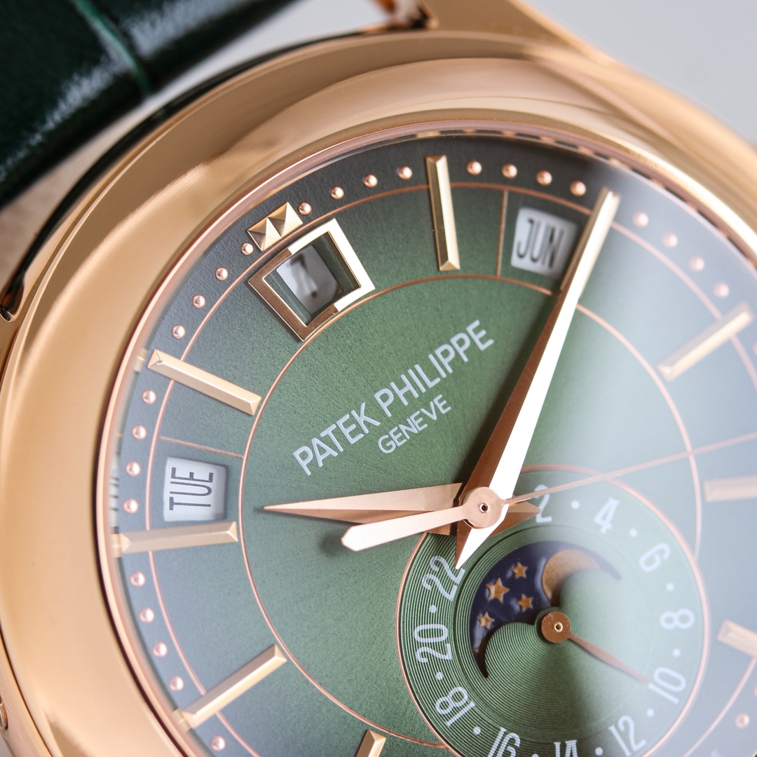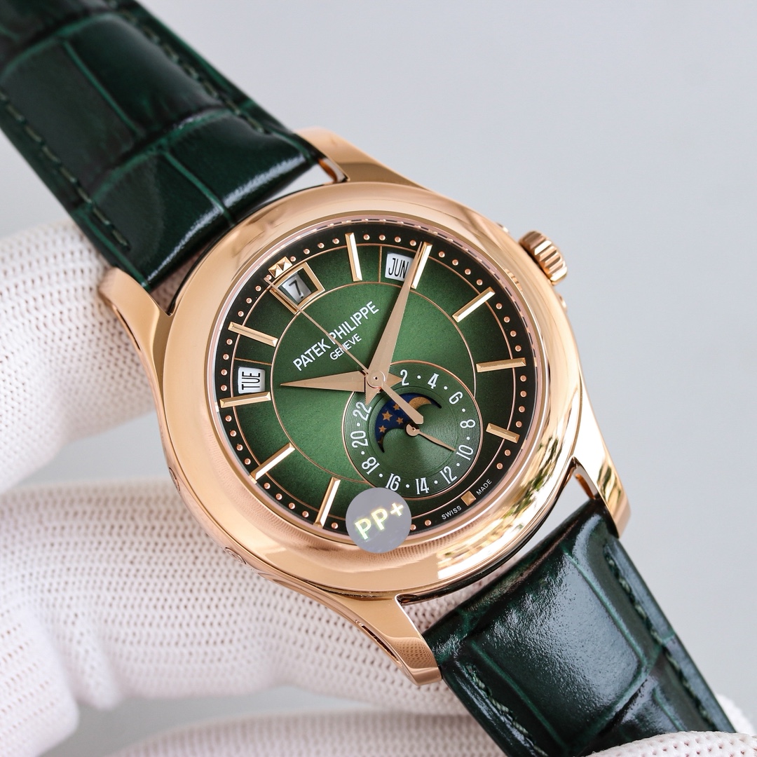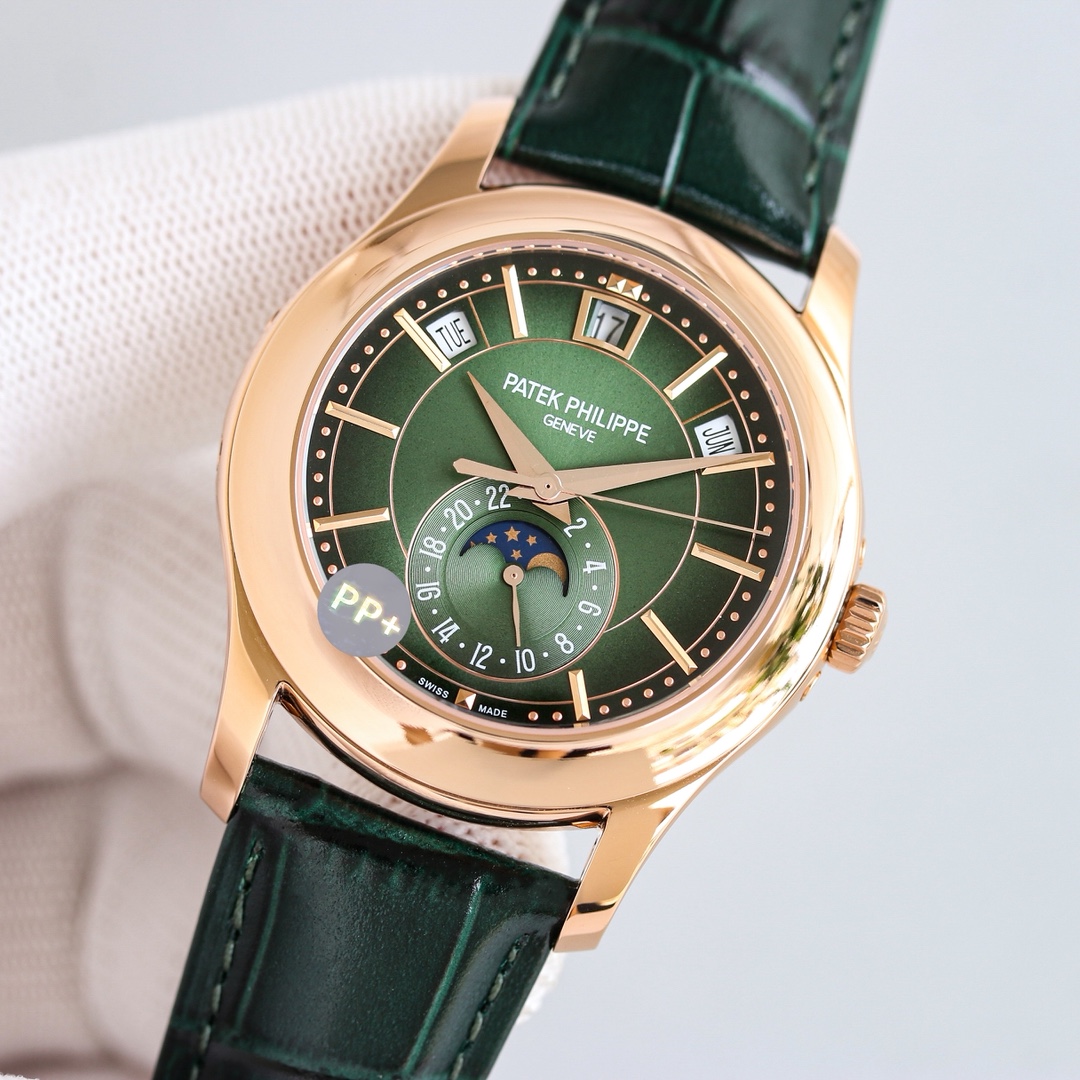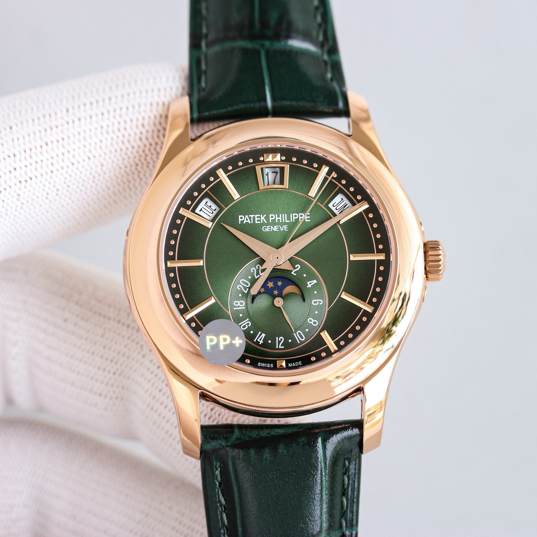 PP+ Factory 110g weighted Patek Philippe 5205 chronograph. 40x11.4mm, Cal.324S movement. Date, week, month, moon phase. Sapphire crystal, original folding clasp.