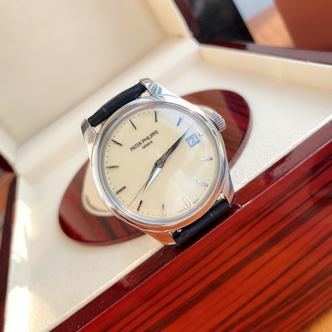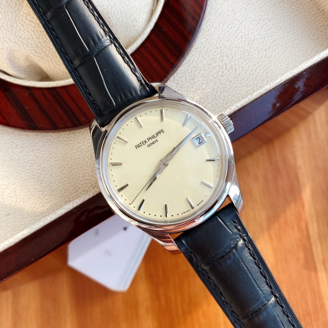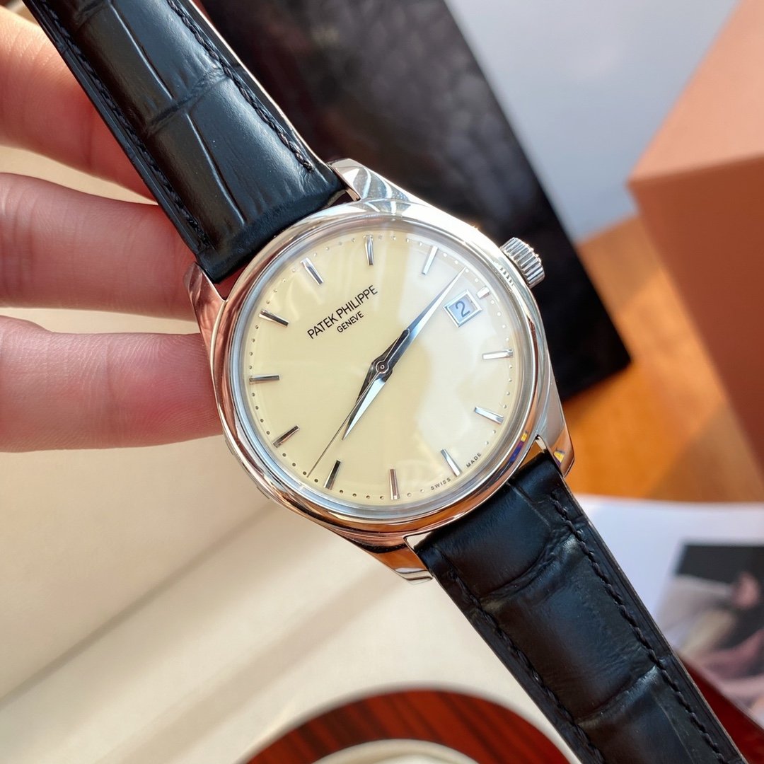 Patek Philippe Calatrava 5227 watch: 39mm, upgraded case, sapphire crystal, custom Cal.324 movement, Italian calfskin strap. Elegant, timeless.