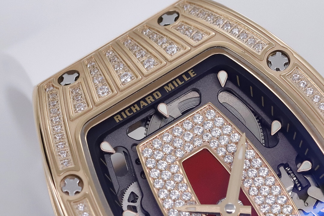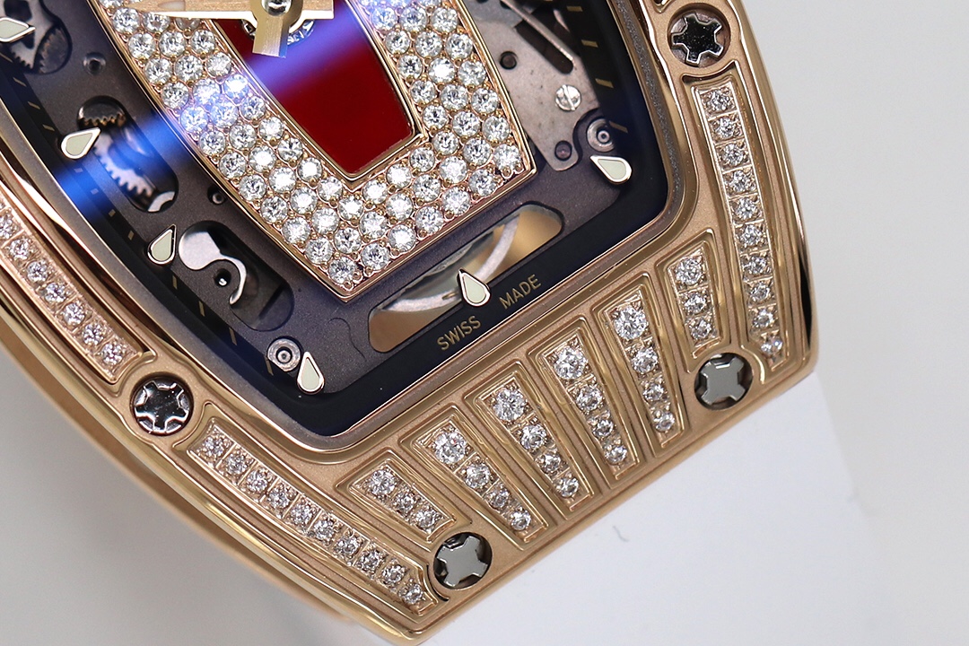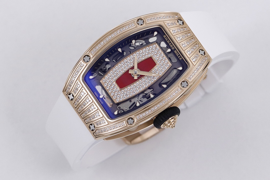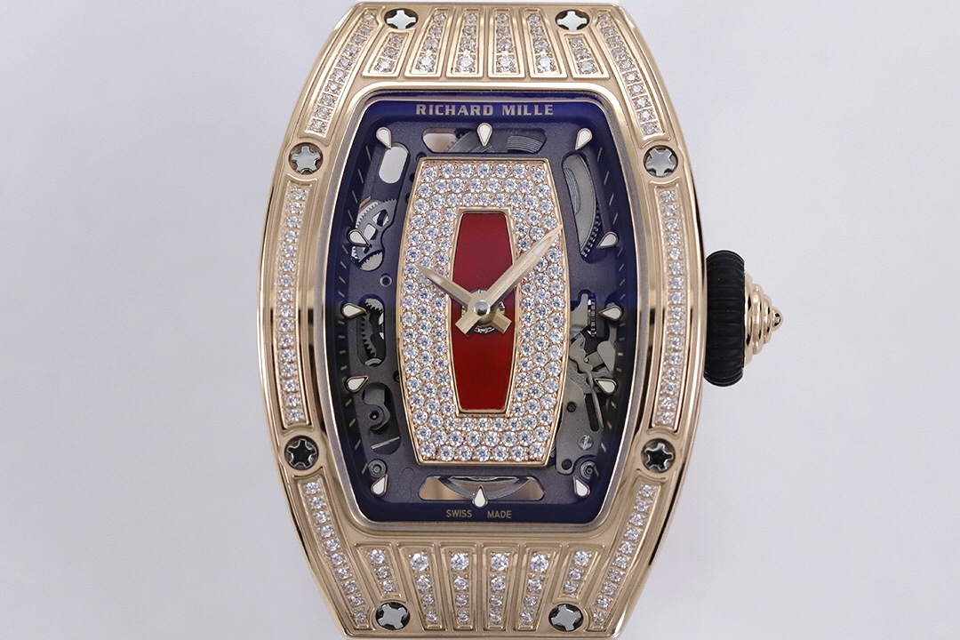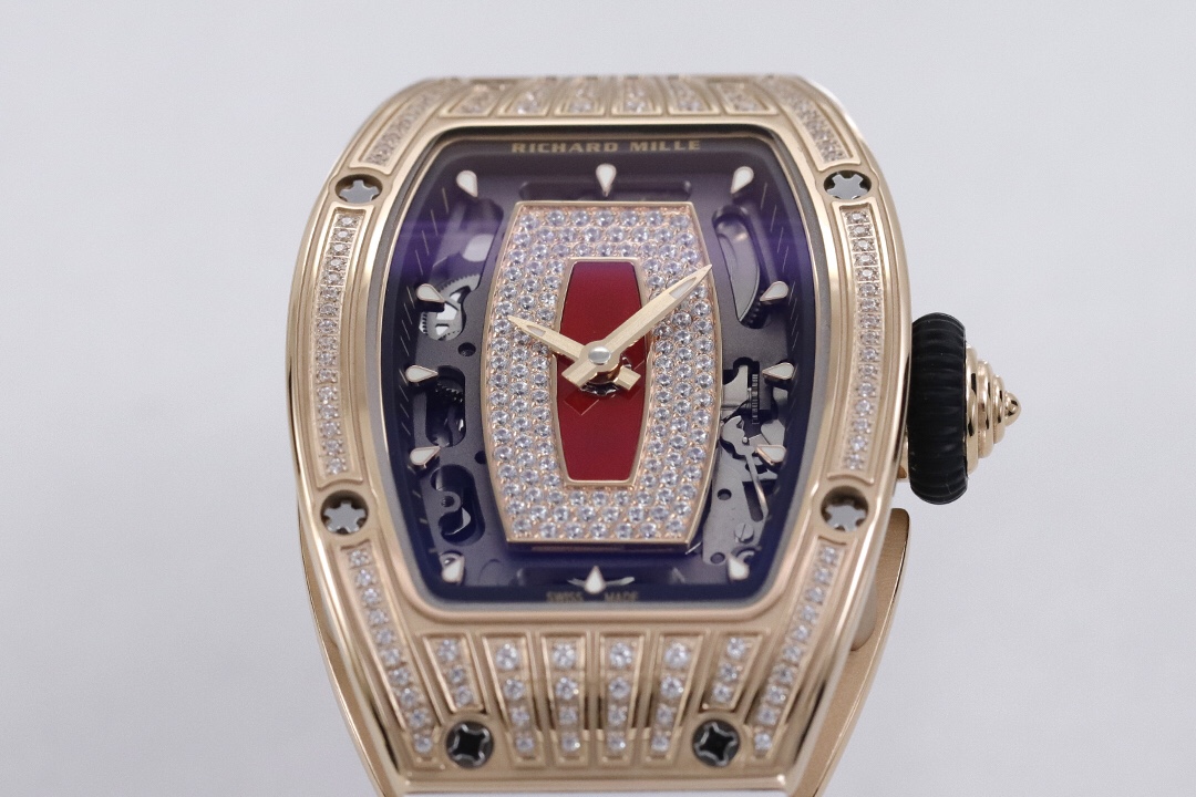 ZF Richard Mille RM07-1 Red/Black Lips series. Tonneau case, red/black agate dial with diamonds, luminous markers, fluoroelastomer strap, CRMA2 automatic movement.