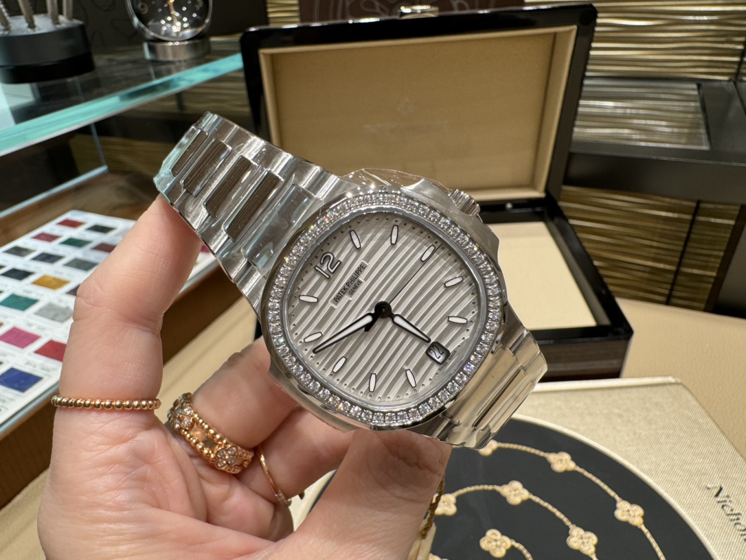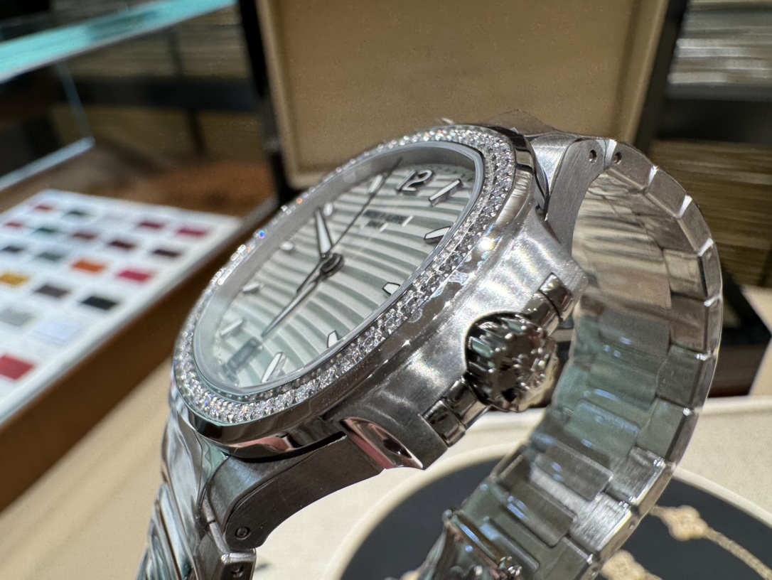 PPF's new "Most Beautiful Women's Nautilus" Patek Philippe 7118 watch. 35.2mm case, wave dial, Cal.324SC movement. Elegant design for professional women.
