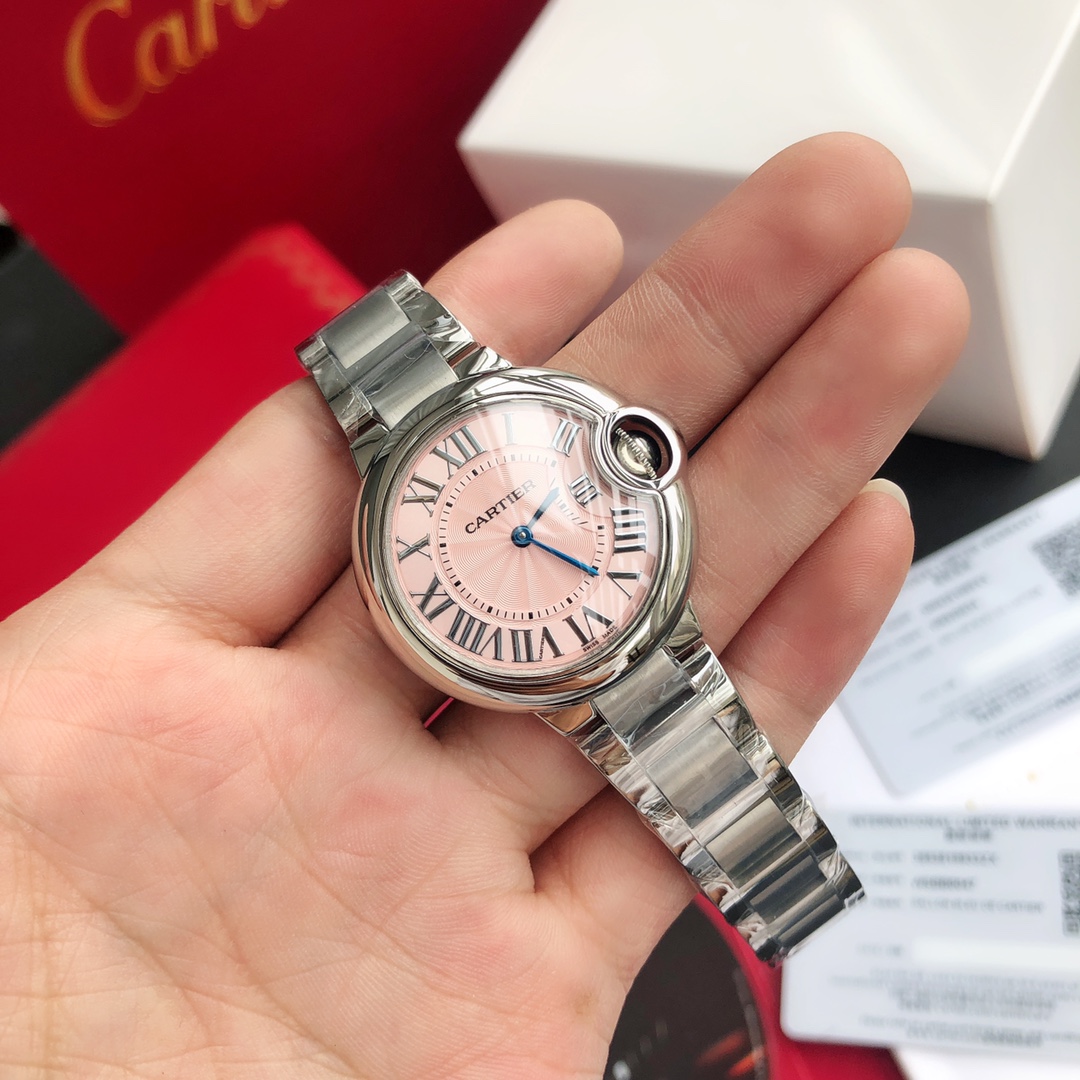 Cartier Blue Balloon quartz watch, 28mm/33mm/36mm. Top global style, perfect for gifts. Highest quality, 316L steel, sapphire crystal. Details match original. Unconditional returns, lifetime warranty.