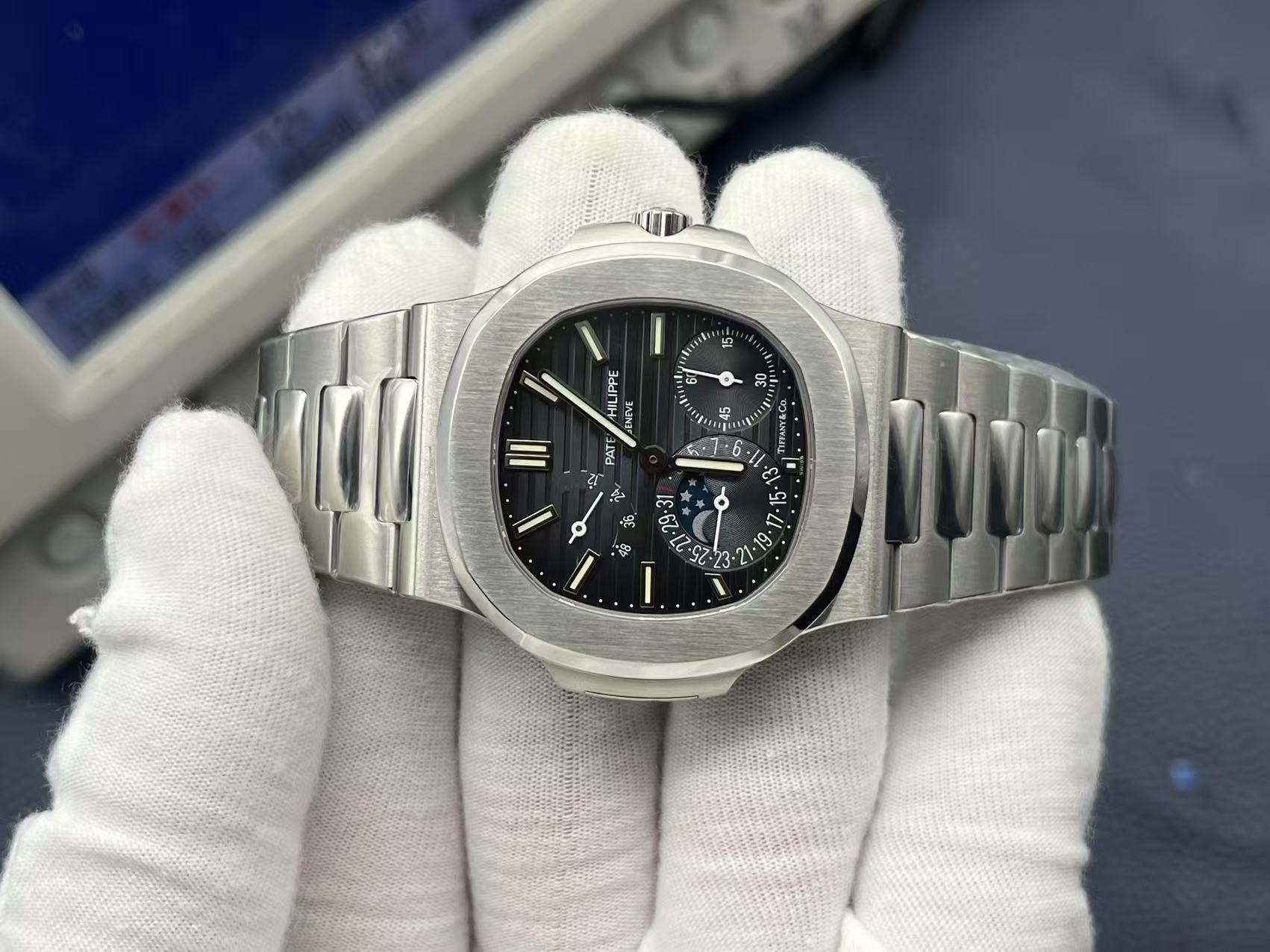 ZF Factory's 3-year Patek Philippe PGR Square Diamond V3 with Cal.240 PS IRM C LU movement (265 parts, 21600 vph). Genuine-like steel strap & exclusive "Blue Charm" dial surpasses replicas.