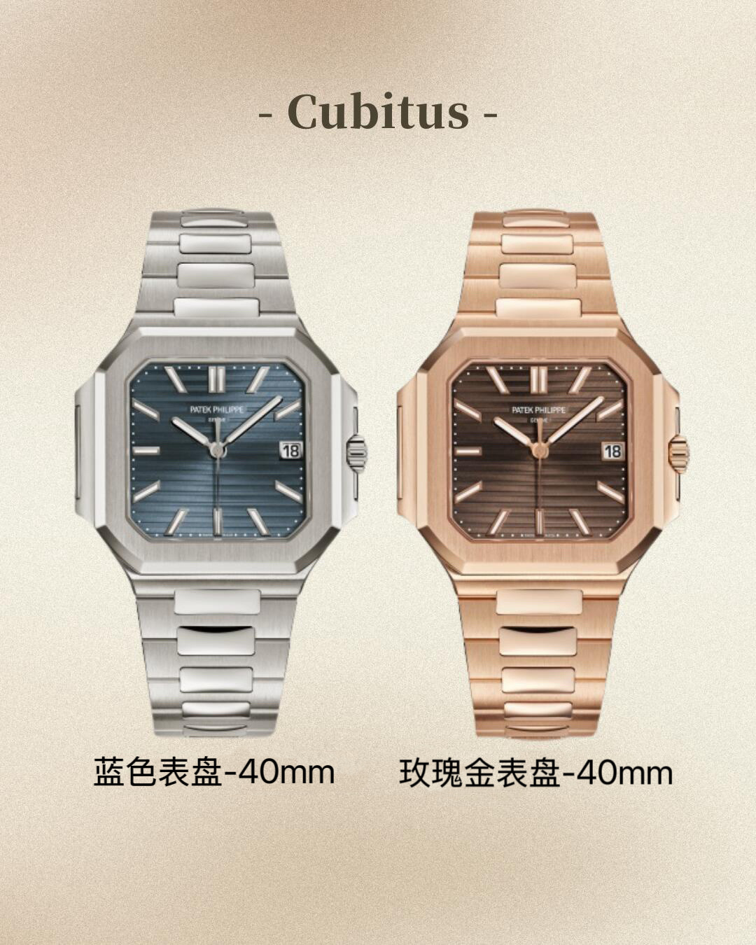 New Patek 40mm arrived! Patek Philippe Cubitus 7128 mid-size (40mm) 2025. Features: custom 9015 Cal.26-330 SC movement, 316L steel strap, 8.5mm thickness.