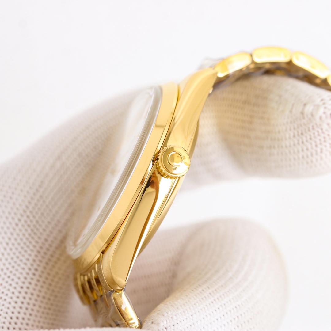 OMEGA De Ville Tresor 40mm manual mechanical watch. Sapphire crystal, blue PVD dial, steel case, open caseback. Compatible with original parts.