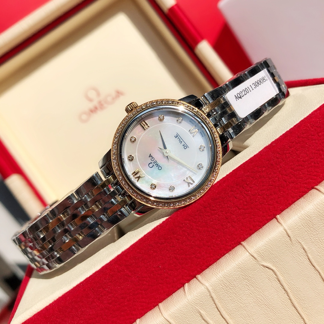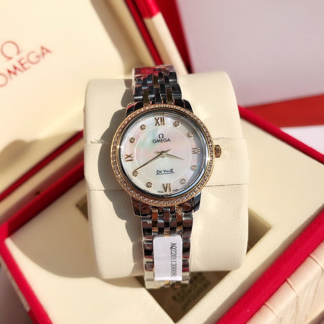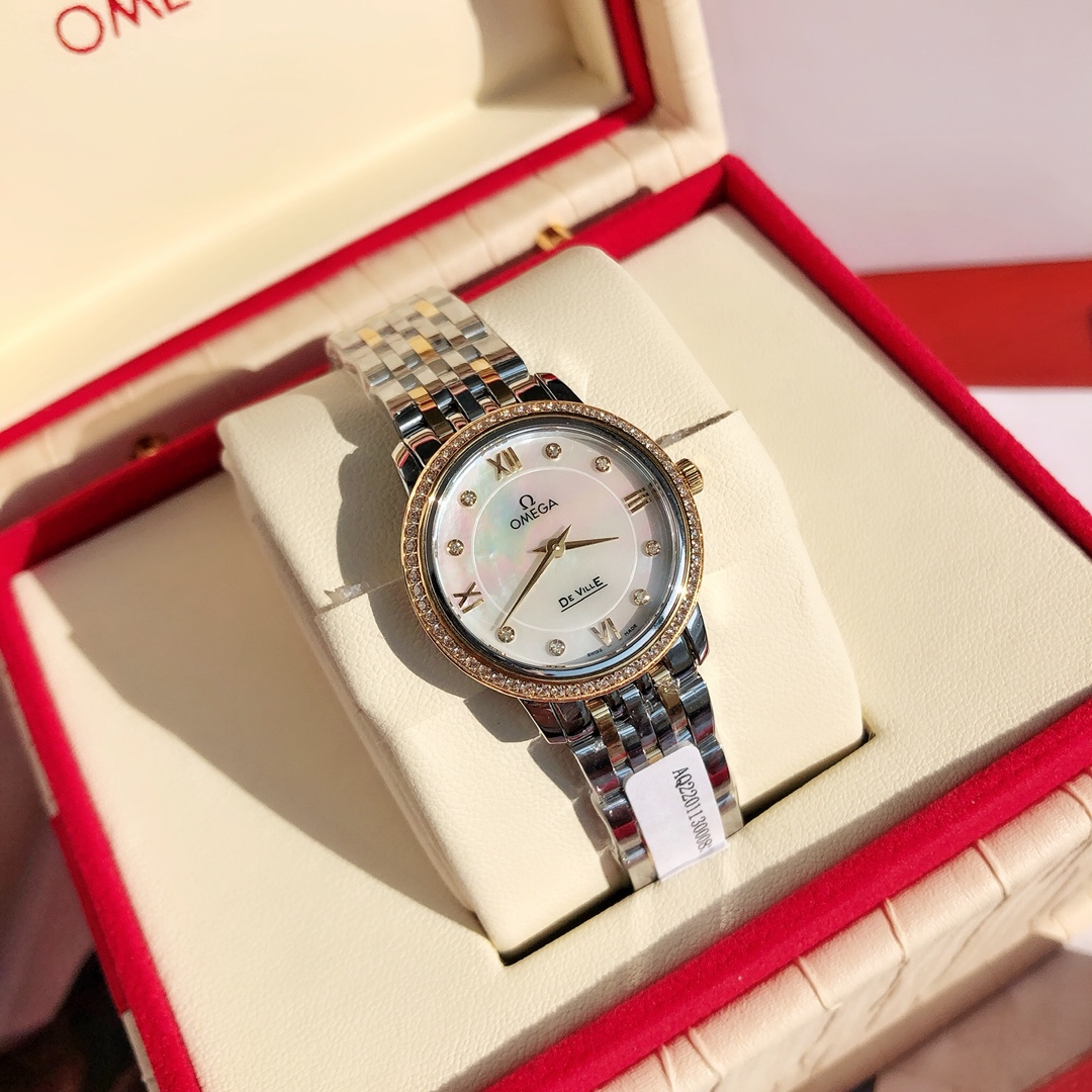 New OMEGA diamond watch exclusive launch. Classic elegant design, 60 VS1.1 Swarovski diamonds on bezel, 8 natural VS1.2 diamonds inside. Authentic movement, steel case and bracelet. Includes GTC certification and full packaging.