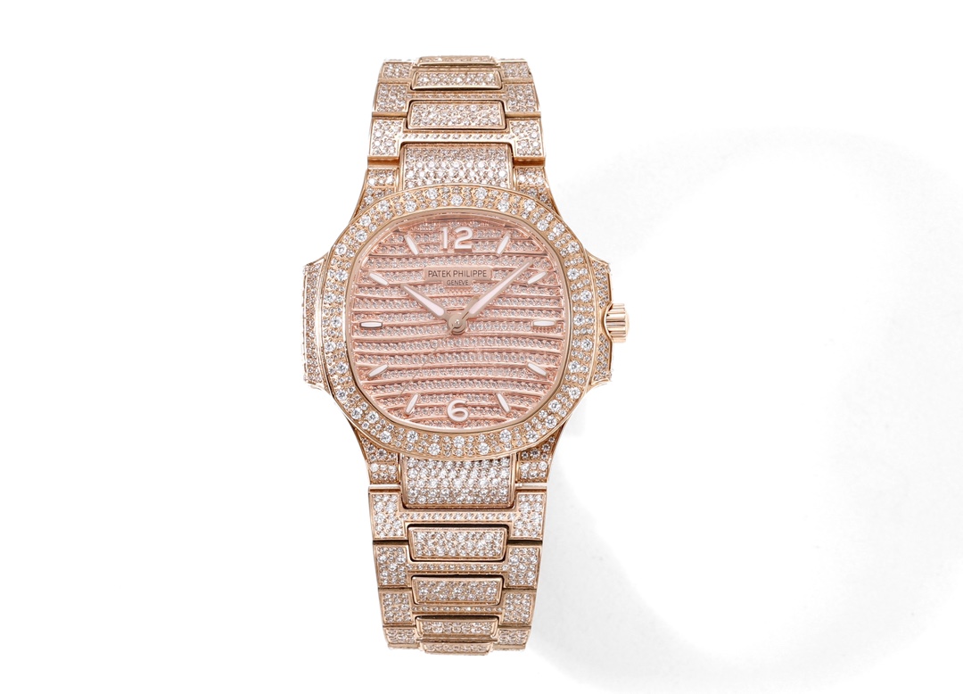 GR Patek Philippe 7118 Nautilus women's watch, limited edition fully set with diamonds. Features automatic movement, sapphire case back, 30m water resistance, 35.2mm diameter.