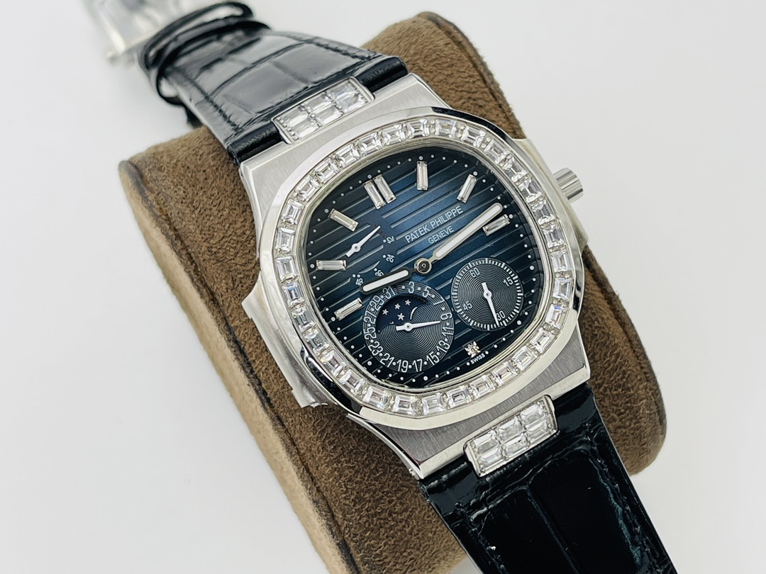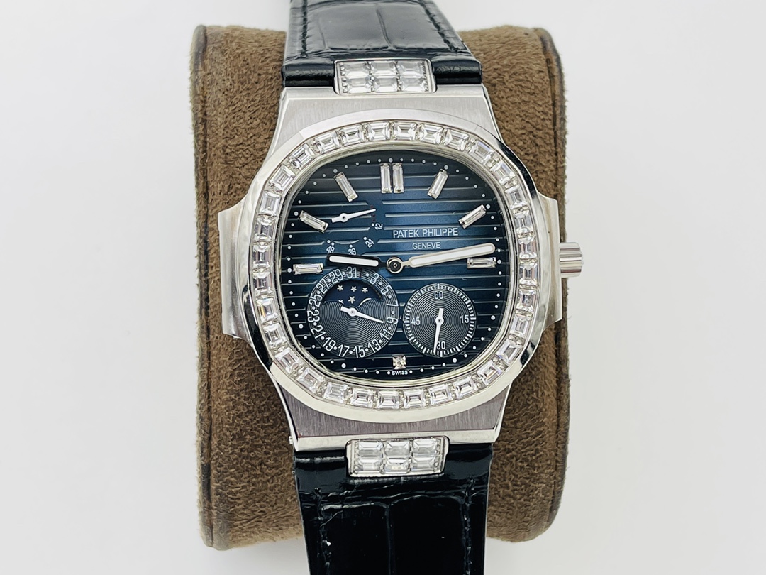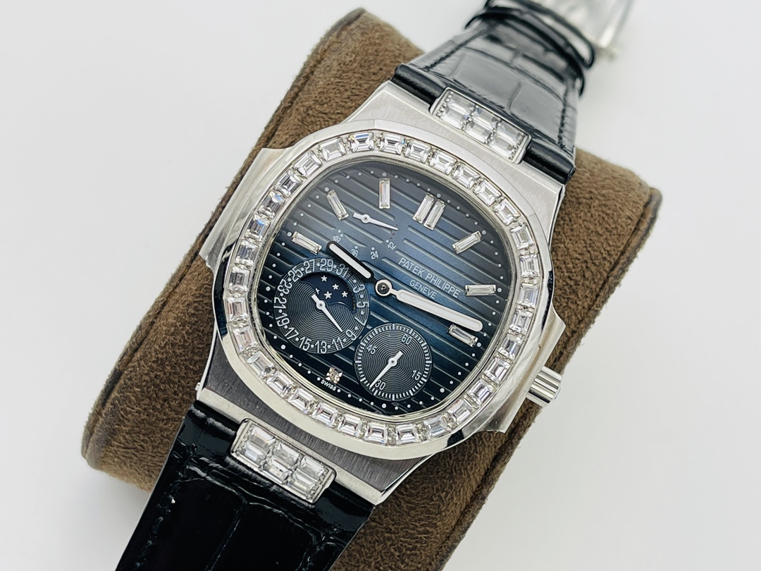 PFF Factory 2021 highly recommends V3 upgraded Patek Philippe Nautilus 5724. All functions like genuine: power reserve, calendar, moon phase. 40mm 904L steel, sapphire crystal. Swarovski diamonds on bezel. Free custom pen with purchase.