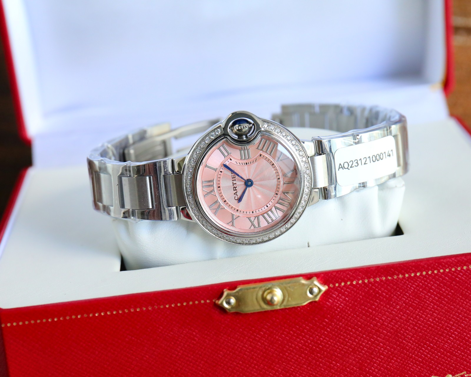 New 33 diamond Cartier watch with quartz movement, 50 VS1.5 diamonds, certified. Great gift.