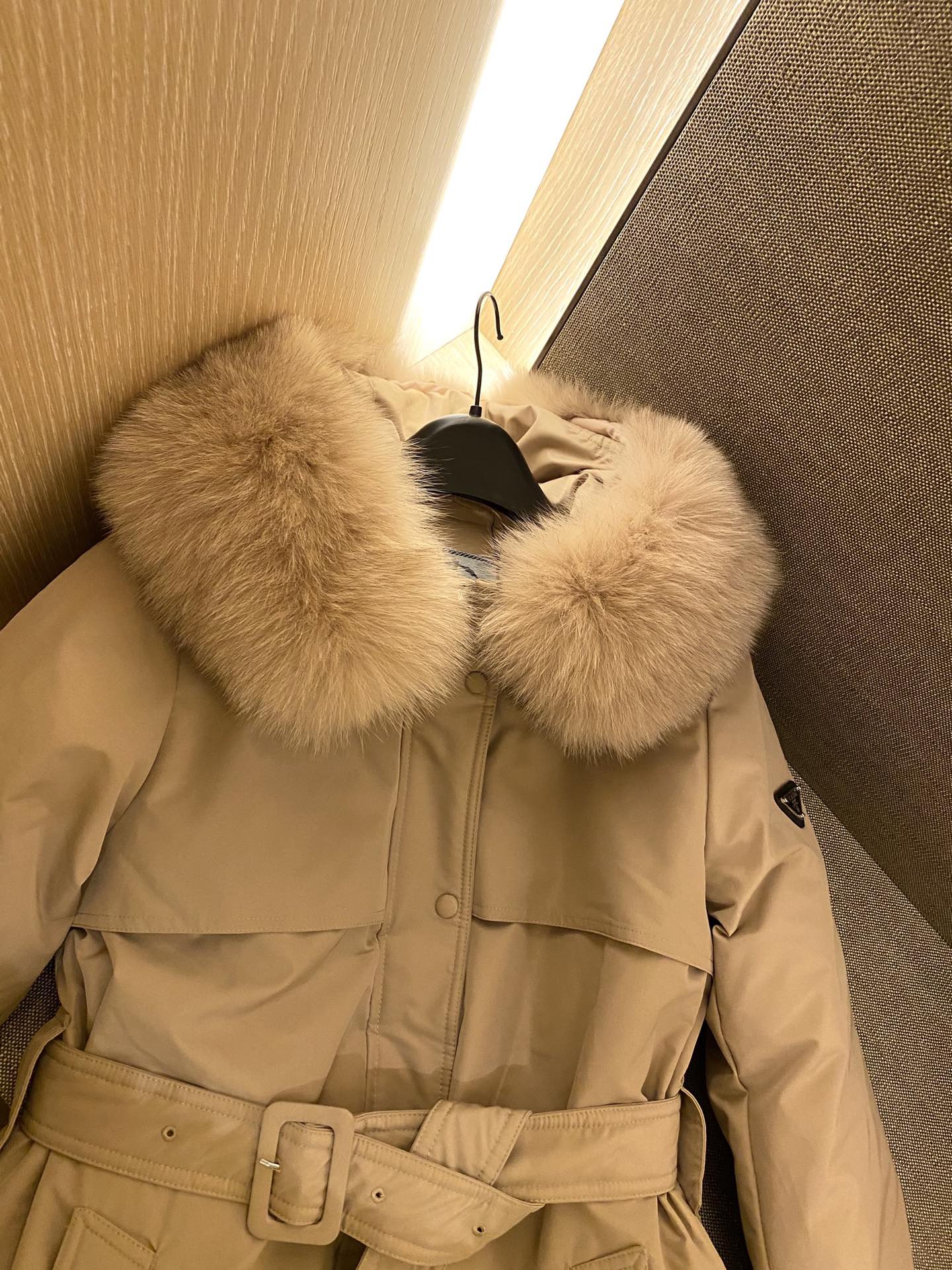 Original title: Guangzhou high version PRADA 90% white goose down coat style oversized fox fur collar down jacket! !