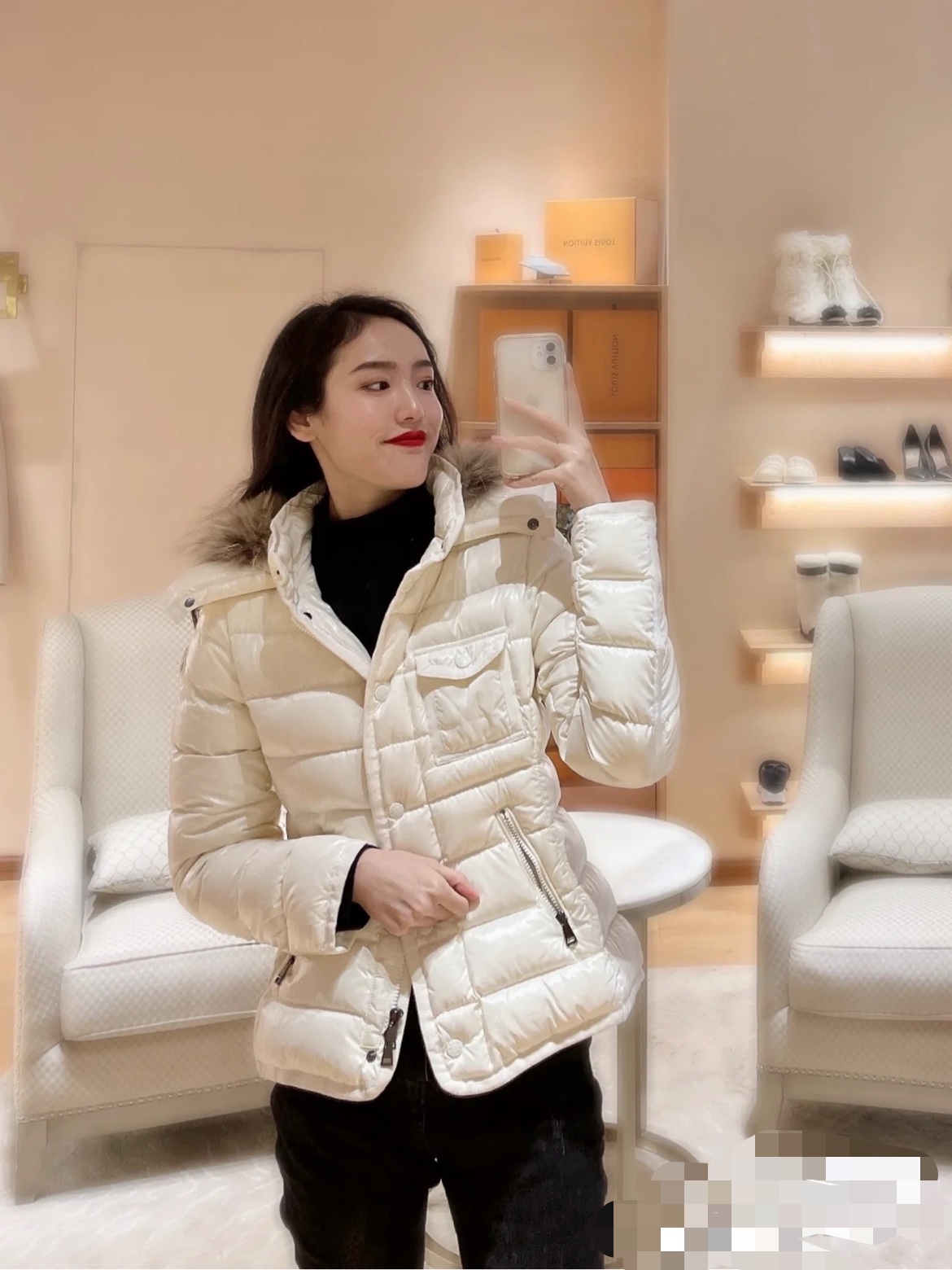 Original title: Guangzhou high version Moncler fur collar down jacket Tong Liya short style