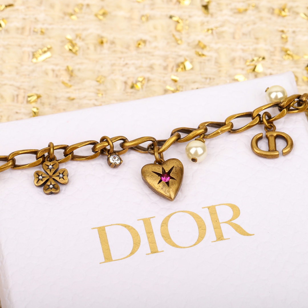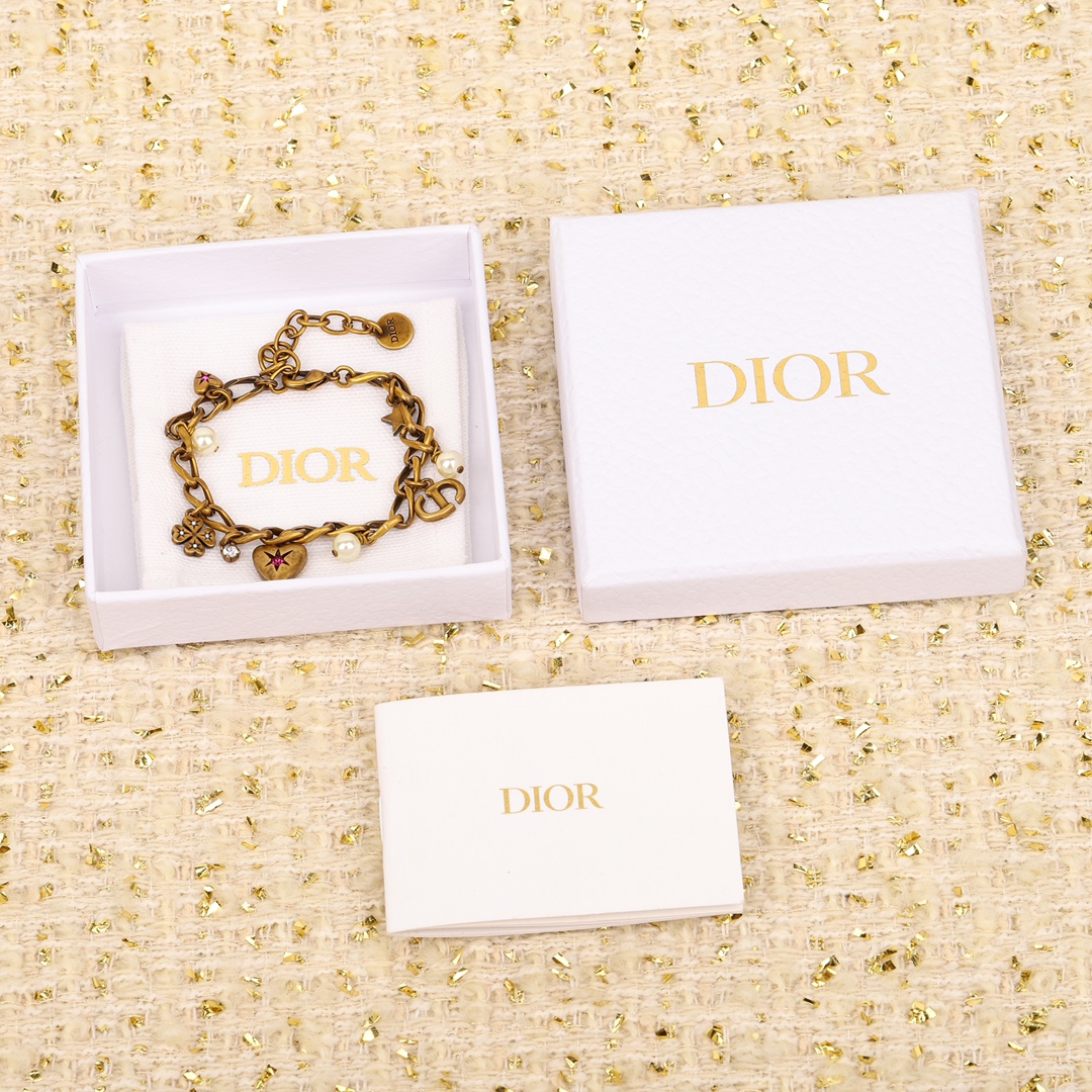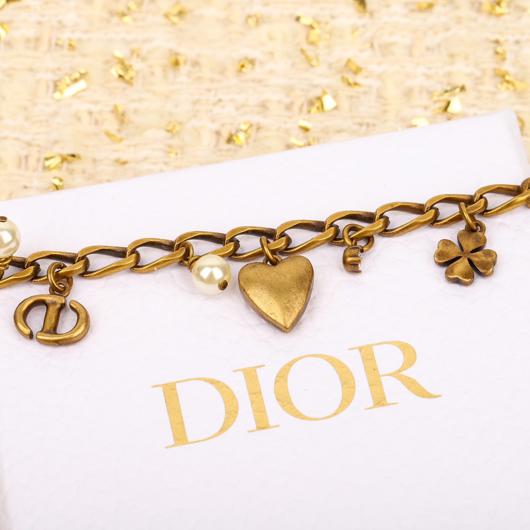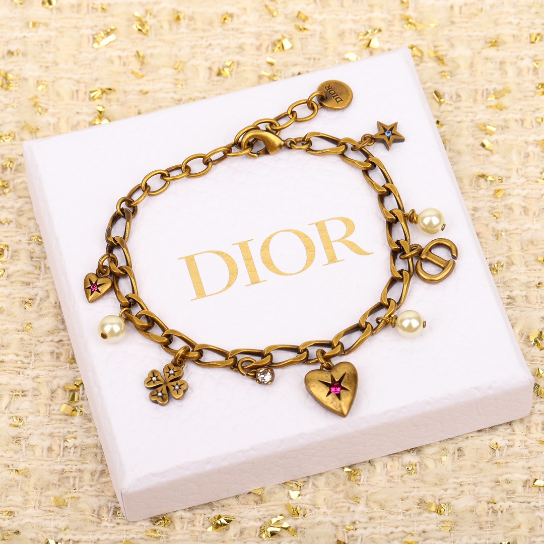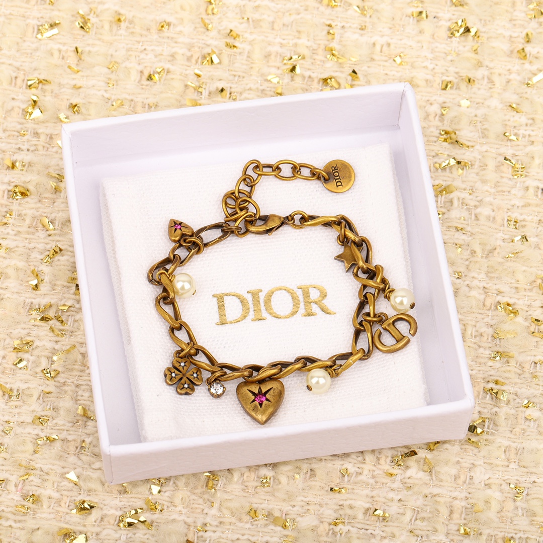 [Dior][D Retro Multi-Accessory Bracelet] Zhou Ye same style 24 latest style! The retro gold series reappears after many years Highly recommended! Super beautiful, matches with everything so well! Consistent with authentic brass customization, retro vintage craftsmanship super special! Asymmetric design unique, classic CD, stars, hearts, four-leaf clover, rhinestones, pearl elements collide! Absolutely stunning! Super lucky overlapping magnetic field! Full of symbolic meaning Exquisite, versatile, and耐看! Must have, very textured, highly recommended for keeping. Recognize my family's product, saves you 5200 in no time.