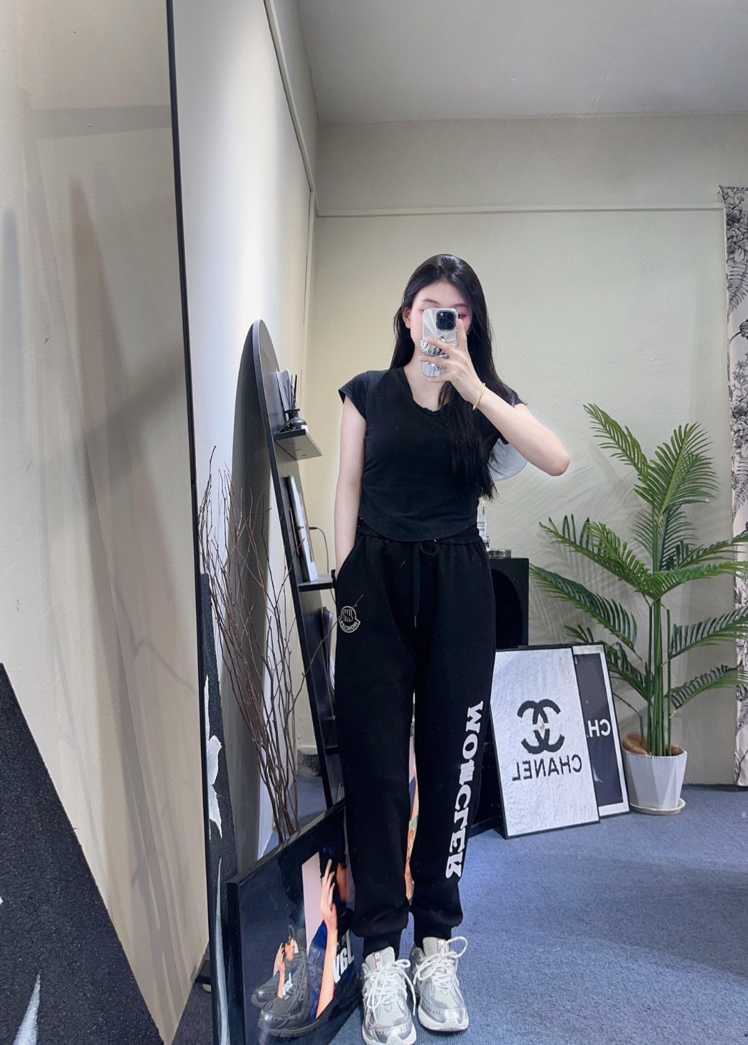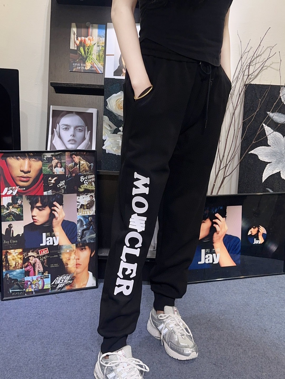 Moncler 24FW logo print pants styling.