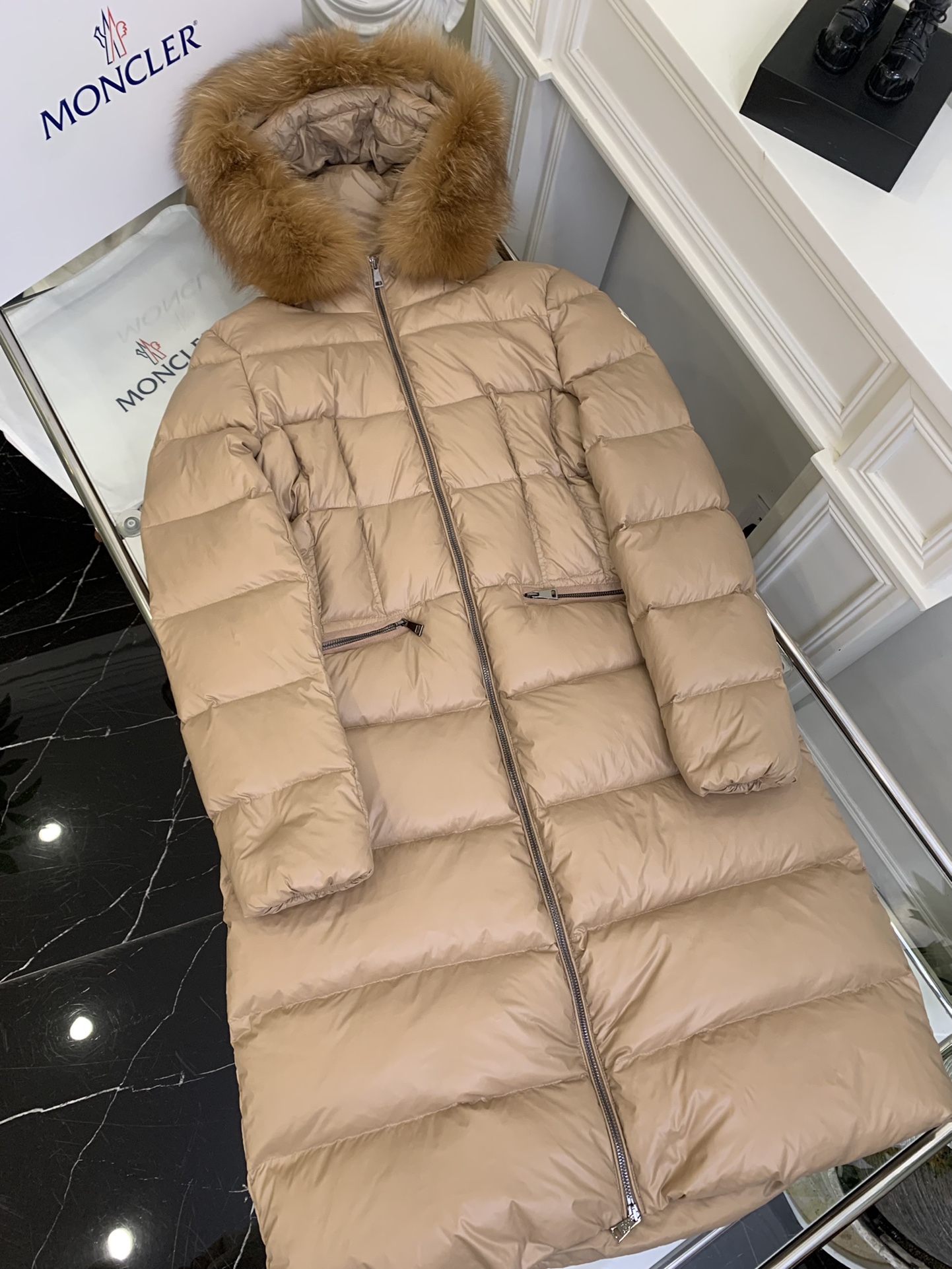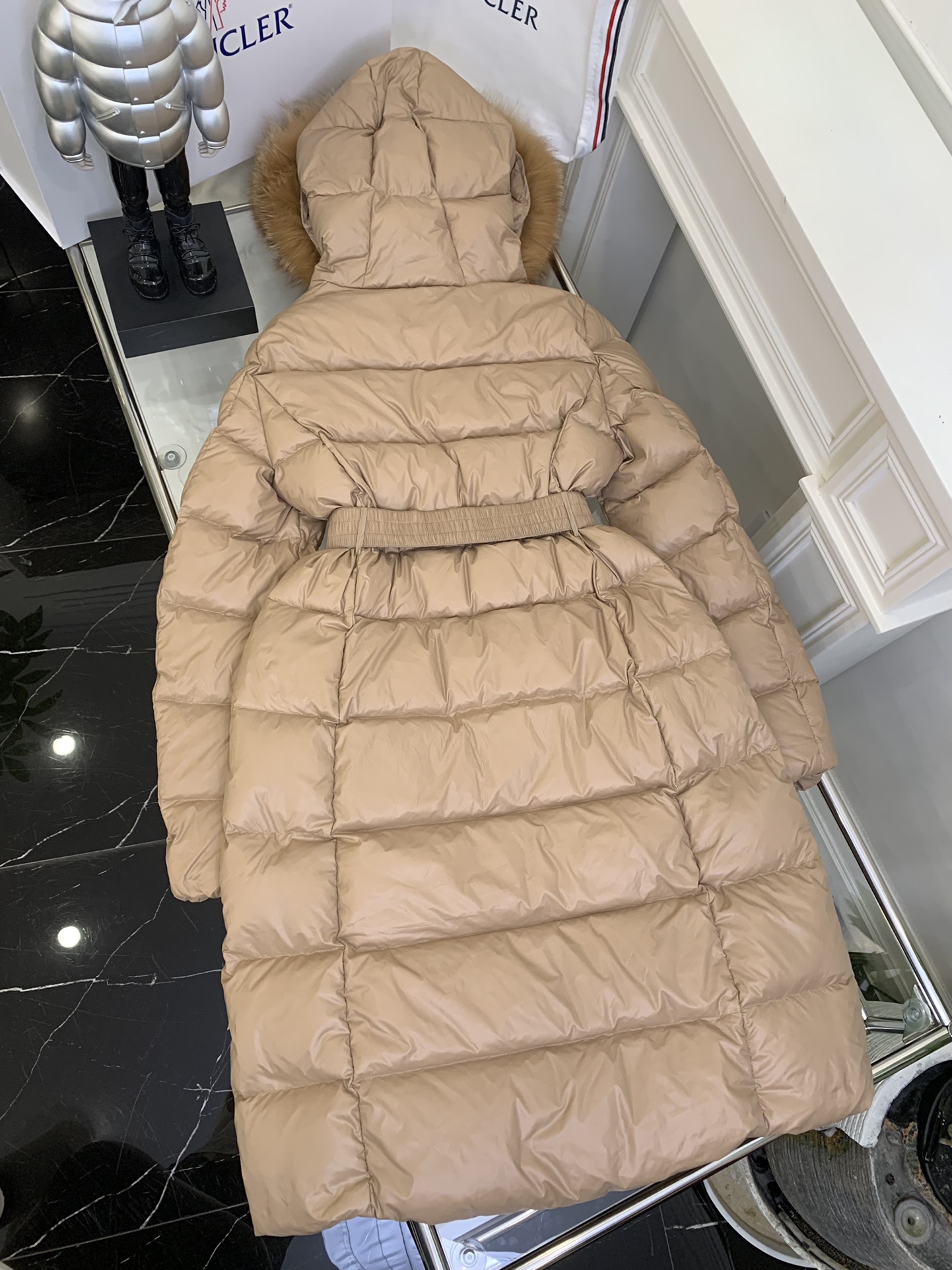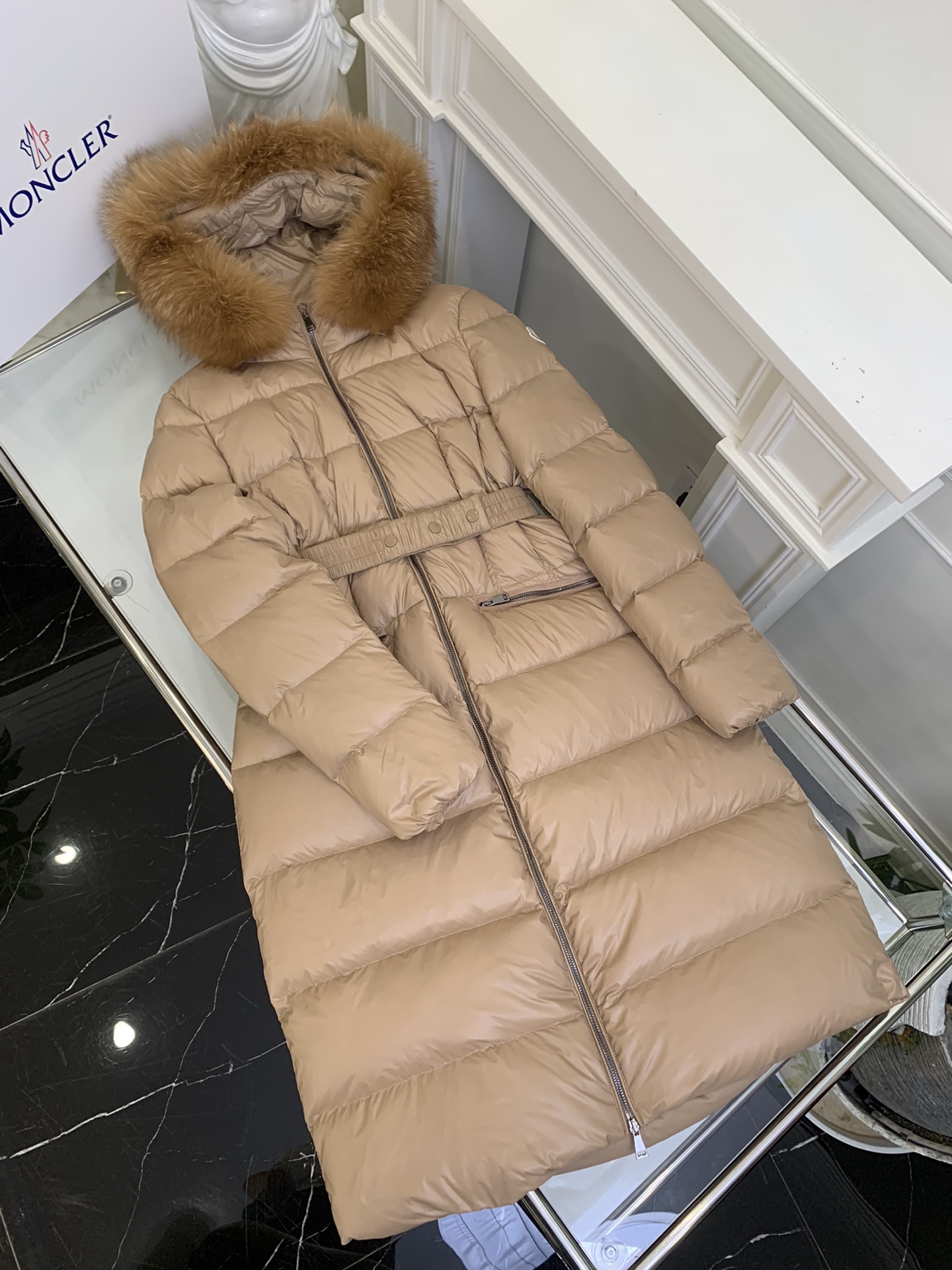 New Autumn/Winter Moncler Hooded Belted Fur-Trimmed Waist-Defining Down Jacket. Slim cut highlights the elegance of this down jacket, with no puffiness or bulkiness, making it light and sleek. Such a high-quality product is hard to come by, and every detail is worth spending a long time exploring. Moreover, this style suits everyone.