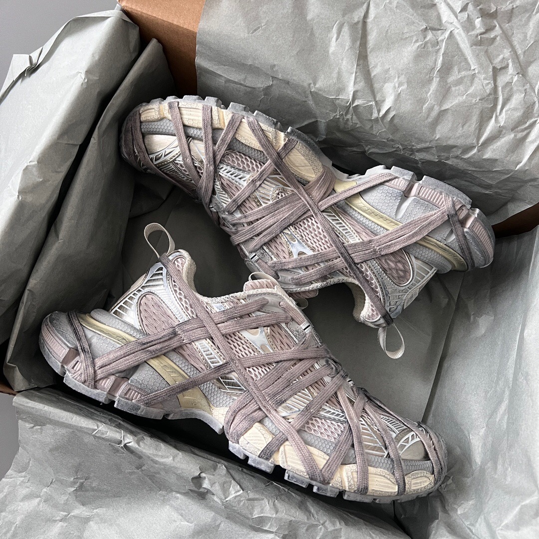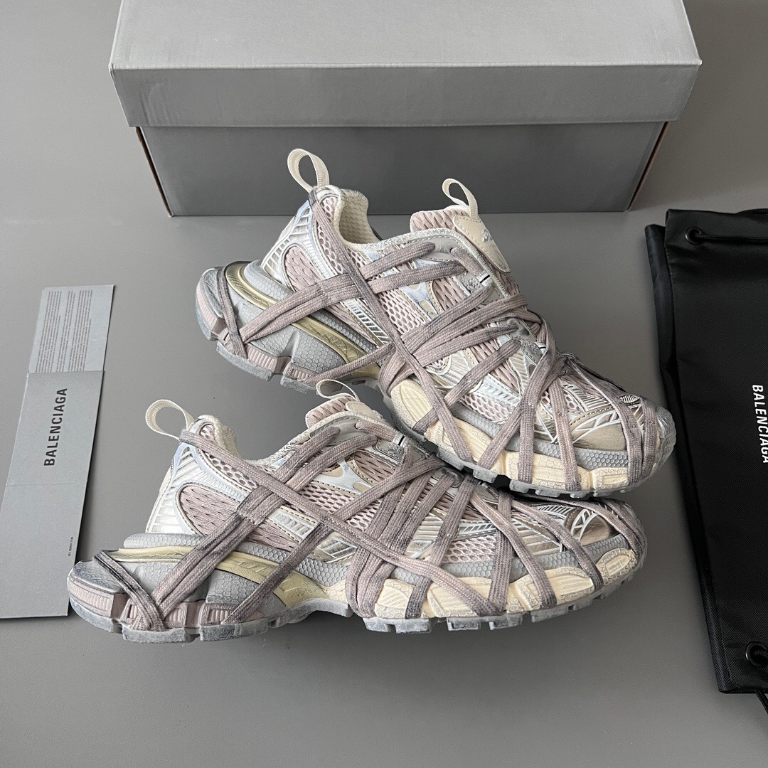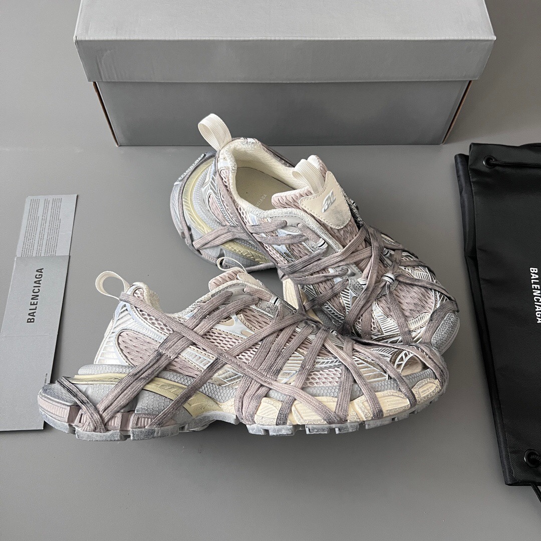 Balenciaga Antom Sneaker Balenciaga brand new aged ten-generation beige gold strapped trendy running shoes While continuing the outdoor silhouette and complex upper structure of the Track Trainer, the new version adds a transparent strap component at the heel, making the entire shoe look more retro. Complete set of original packaging and accessories included!