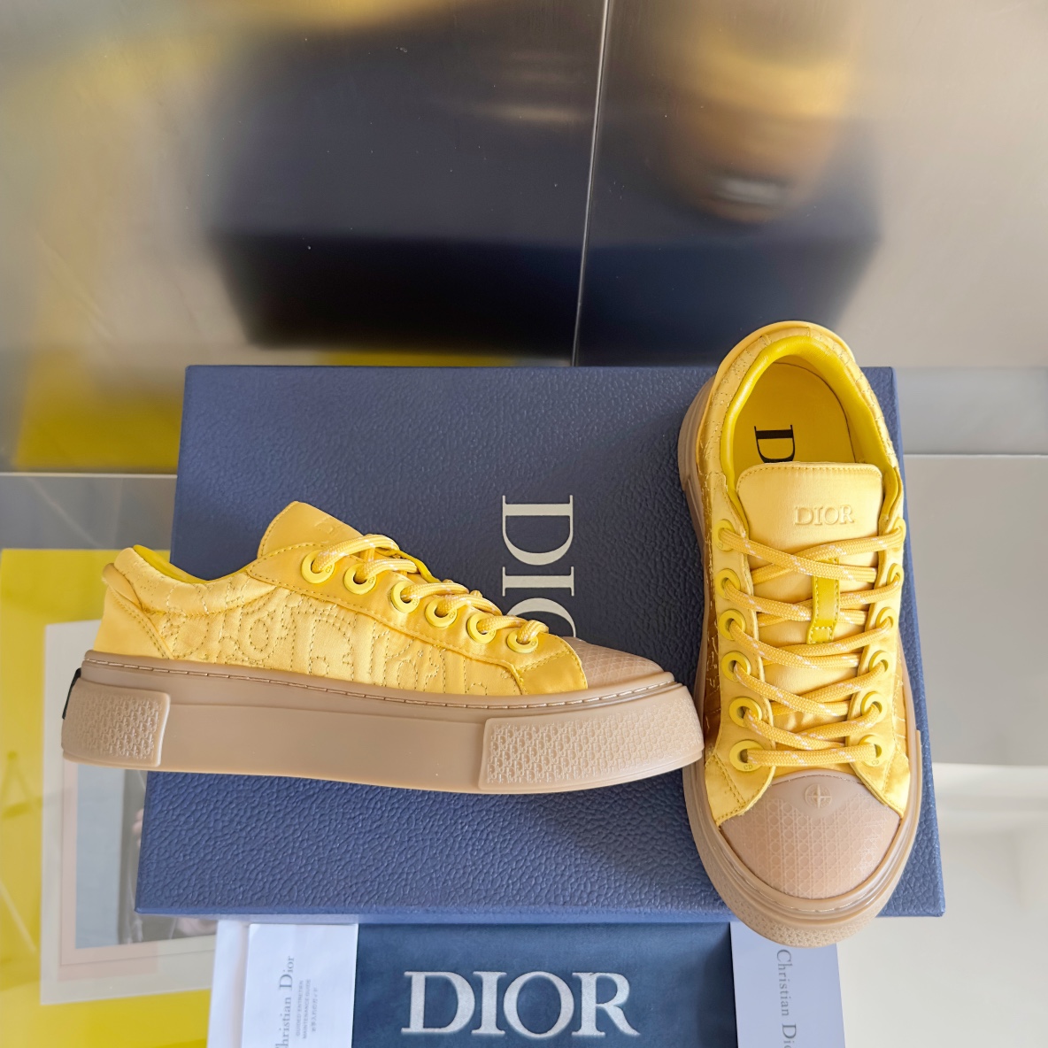 Original Title: Dior Dior 2025ss new B33 series couples capsule rainbow embroidery slip thick sole board shoes casual sneakers