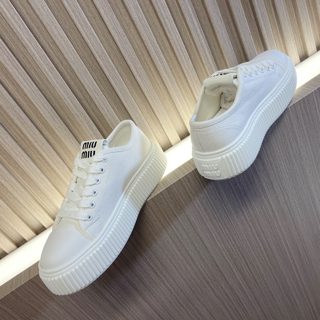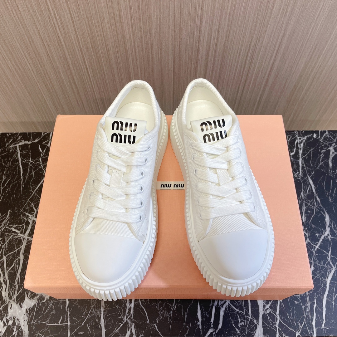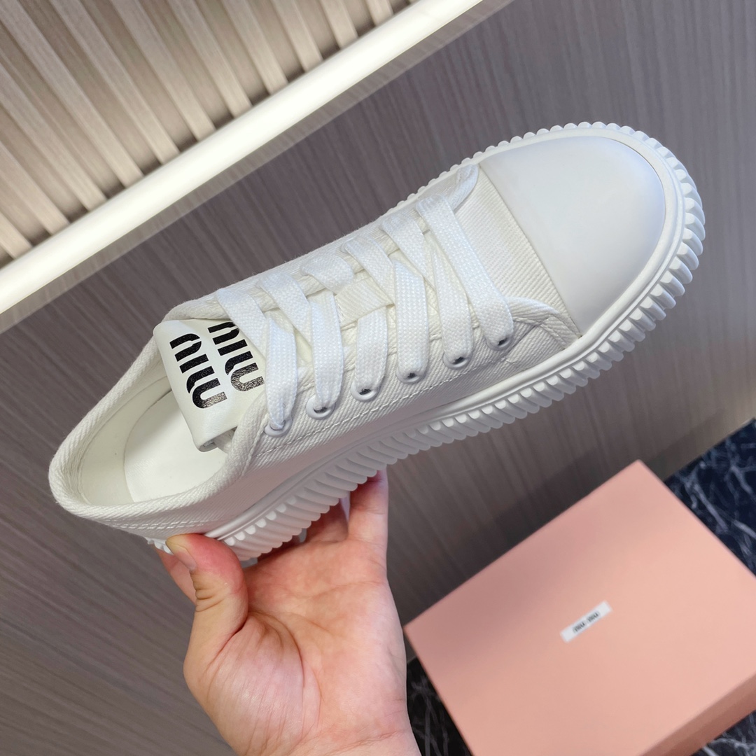 miumiu Miu Miu 2023 new sneakers, biscuit shoes, canvas shoes, white shoes~~