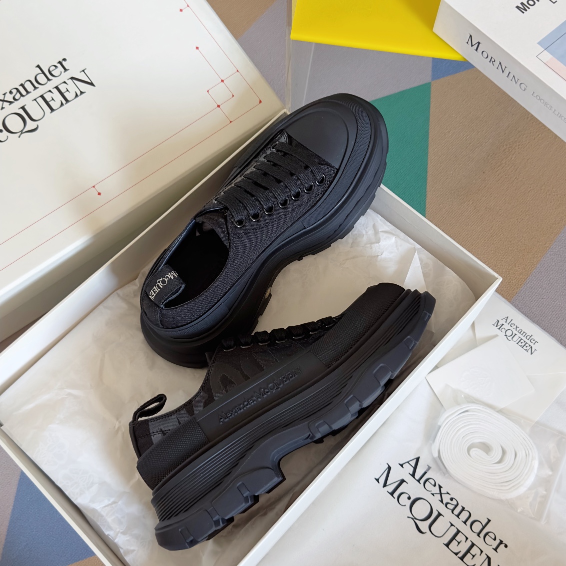 ALEXANDER MCQUEEN Tread Slick Series Platform Lace-Up Canvas Shoes Couple Style Casual Sneakers