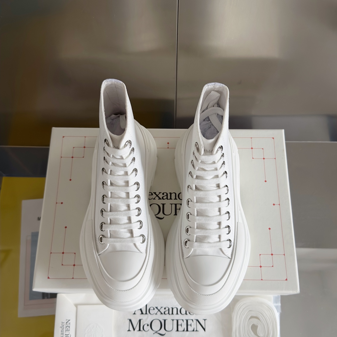 ALEXANDER MCQUEEN Tread Slick Series Platform Lace-Up Zipper Canvas Shoes Couple Styles Ankle Boots Sock Boots Casual Sneakers