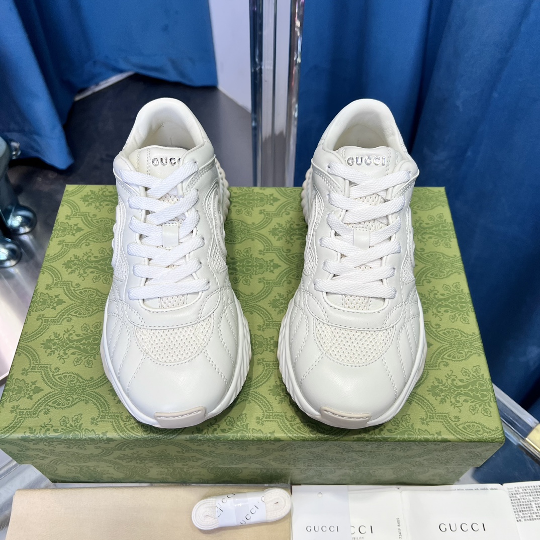 New 2024 colorway, top-tier Gucci Ripple wave sneakers for couples. Original design, premium leather, 5cm sole. Sizes: Women 35-41, Men 39-45.