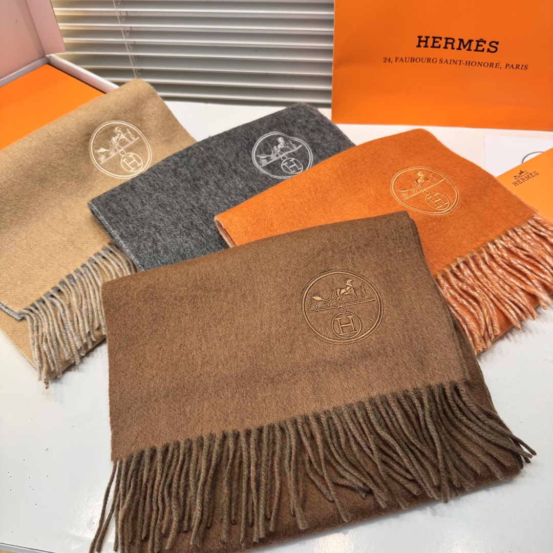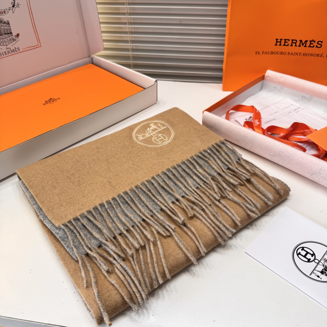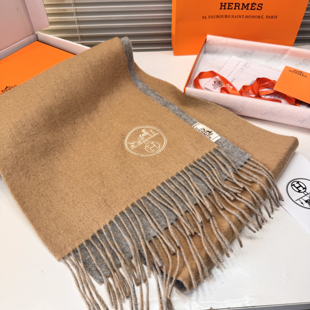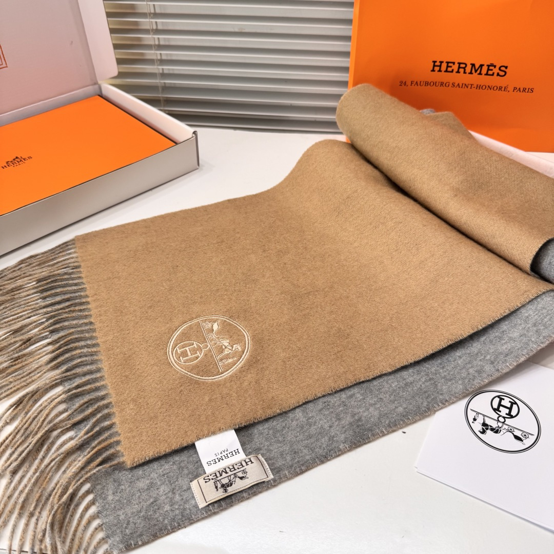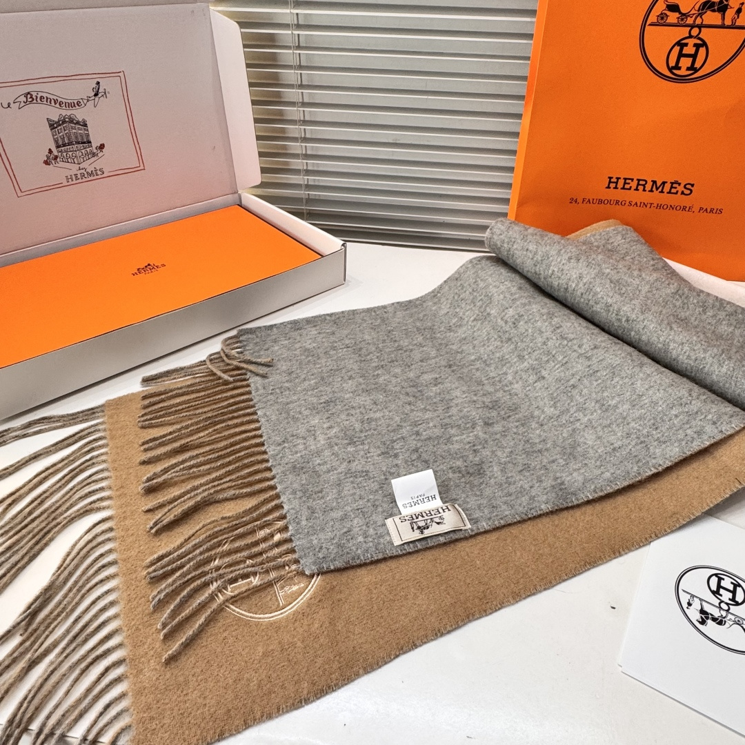 Hermes double-sided scarf, elegant and fashionable autumn-winter accessory. 100% lamb fleece, versatile for all ages. 30x200cm.
