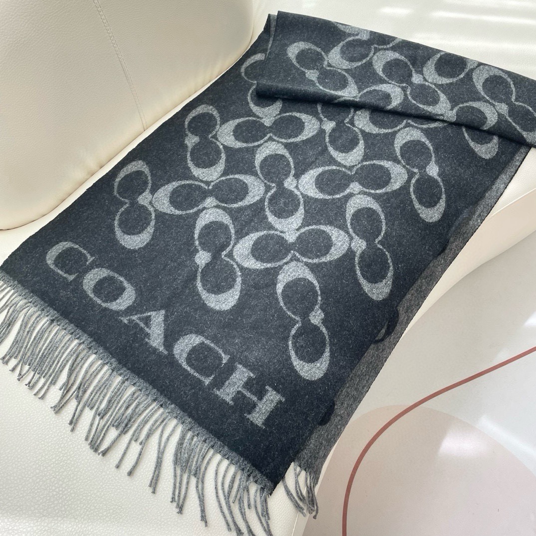 ✨✨【Classic Style】COACH Classic, the Coach shawl is so beautiful! It not only has looks but also quality, 97% wool + 3% cashmere, super soft and comfortable to the touch, dimensions 195×53cm, the overall width is quite good, it can be considered a small shawl. The front and back are complementary colors, one side has a dark logo on a light background, the other side is the opposite color, giving a gentle and soft feeling—this scarf is a must-have!