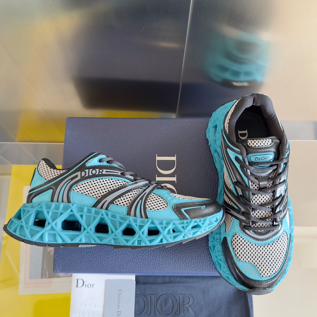 This Dior B35 sneaker uses 3D printing technology to create a hollow sole, while the upper features a dad shoe style mesh拼接 and smooth line layout that perfectly fits current aesthetics, blending retro millennium feel with modern technological sense, a new footwear creation combining cutting-edge technology with retro aesthetics!