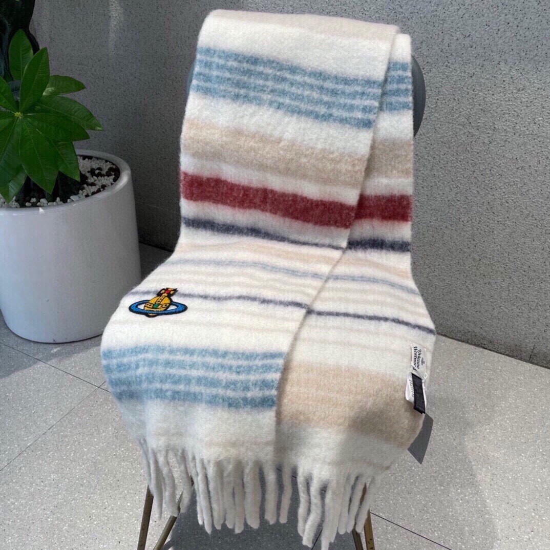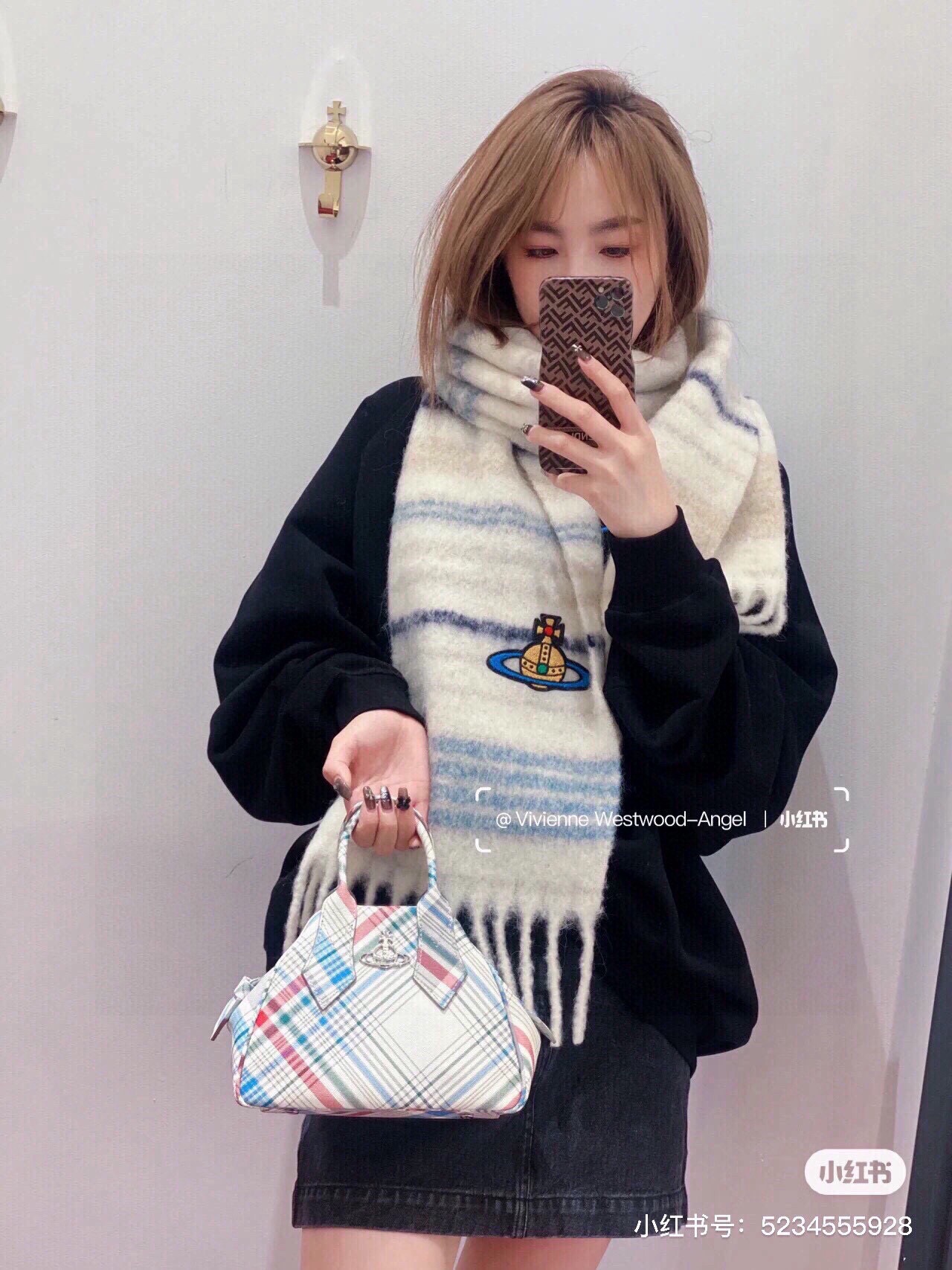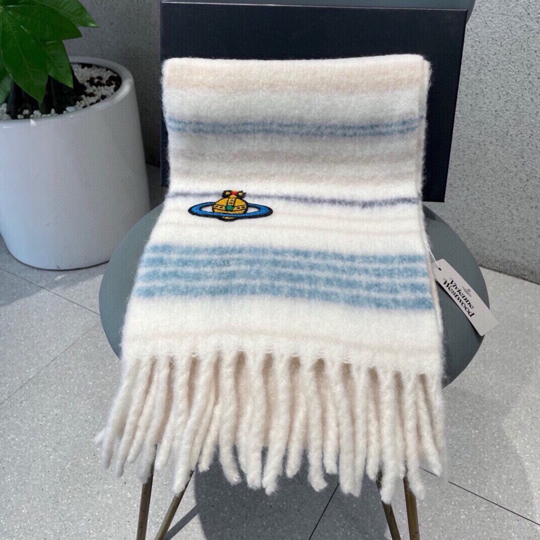Classic Large Saturn Mohair Scarf Vivienne Westwood Saturn, British fashion designer, the punk mother of fashion! Fashion-forward style, strong quality, super beautiful design! Simple and elegant embroidered logo, exquisite. This style doesn't have to worry about looking bad, because the classic elements and trendy new design make it the perfect gift choice, fully showcasing personal style. The quality is very high, the entire accessory gives a luxurious aura while being very delicate, elevating one's overall level several notches. Definitely worth buying! Dimensions 30*180