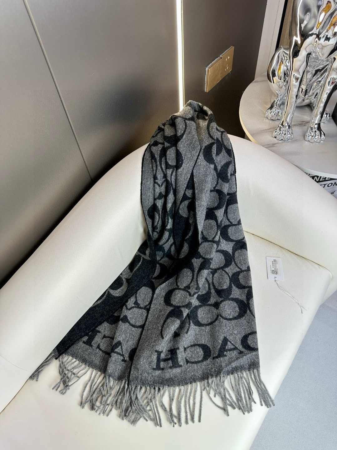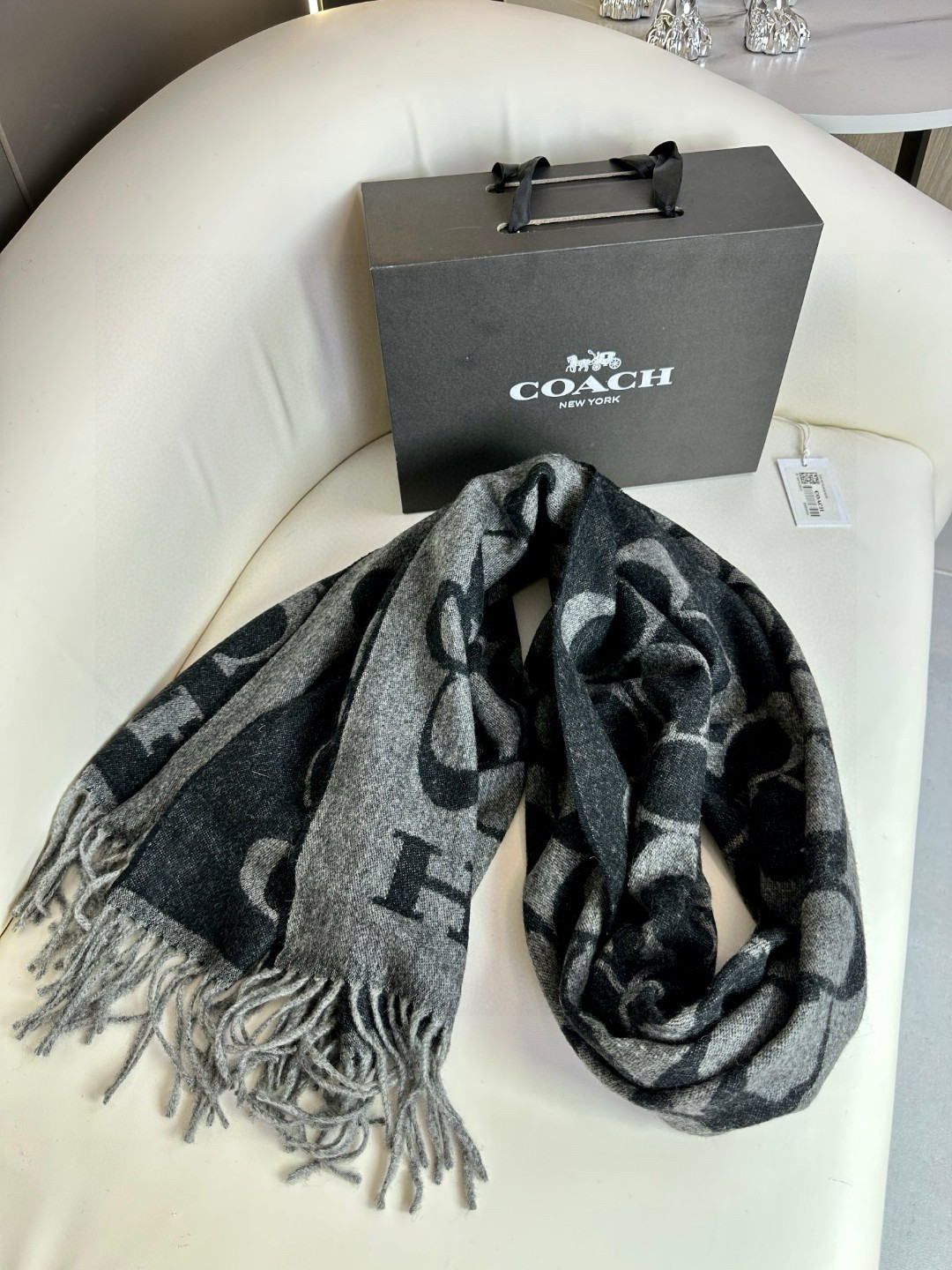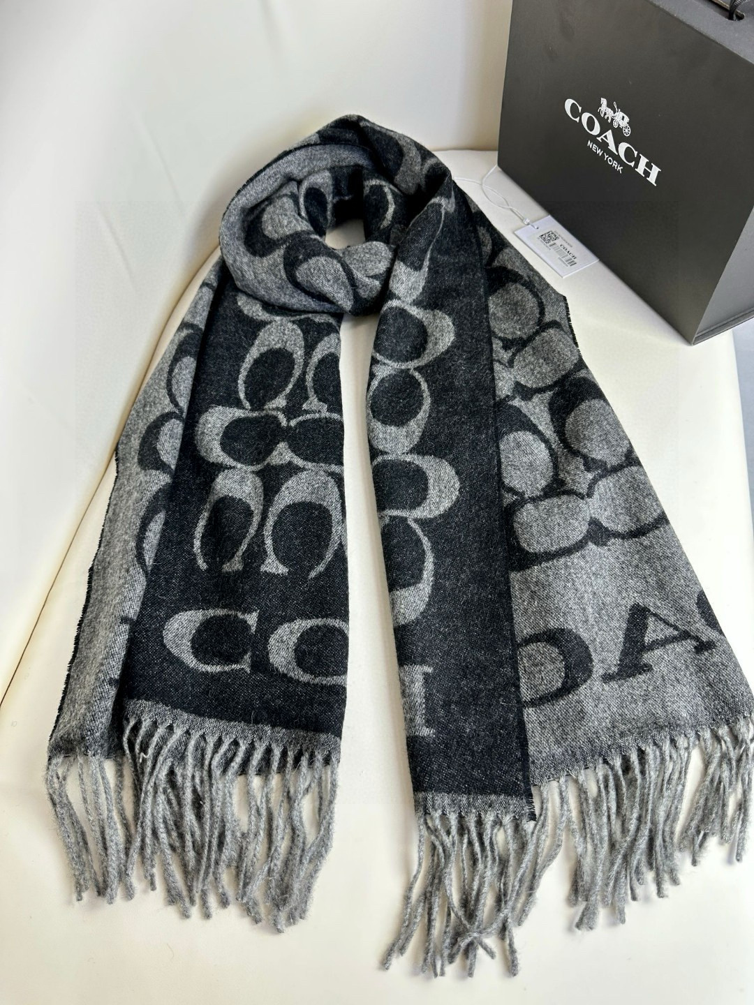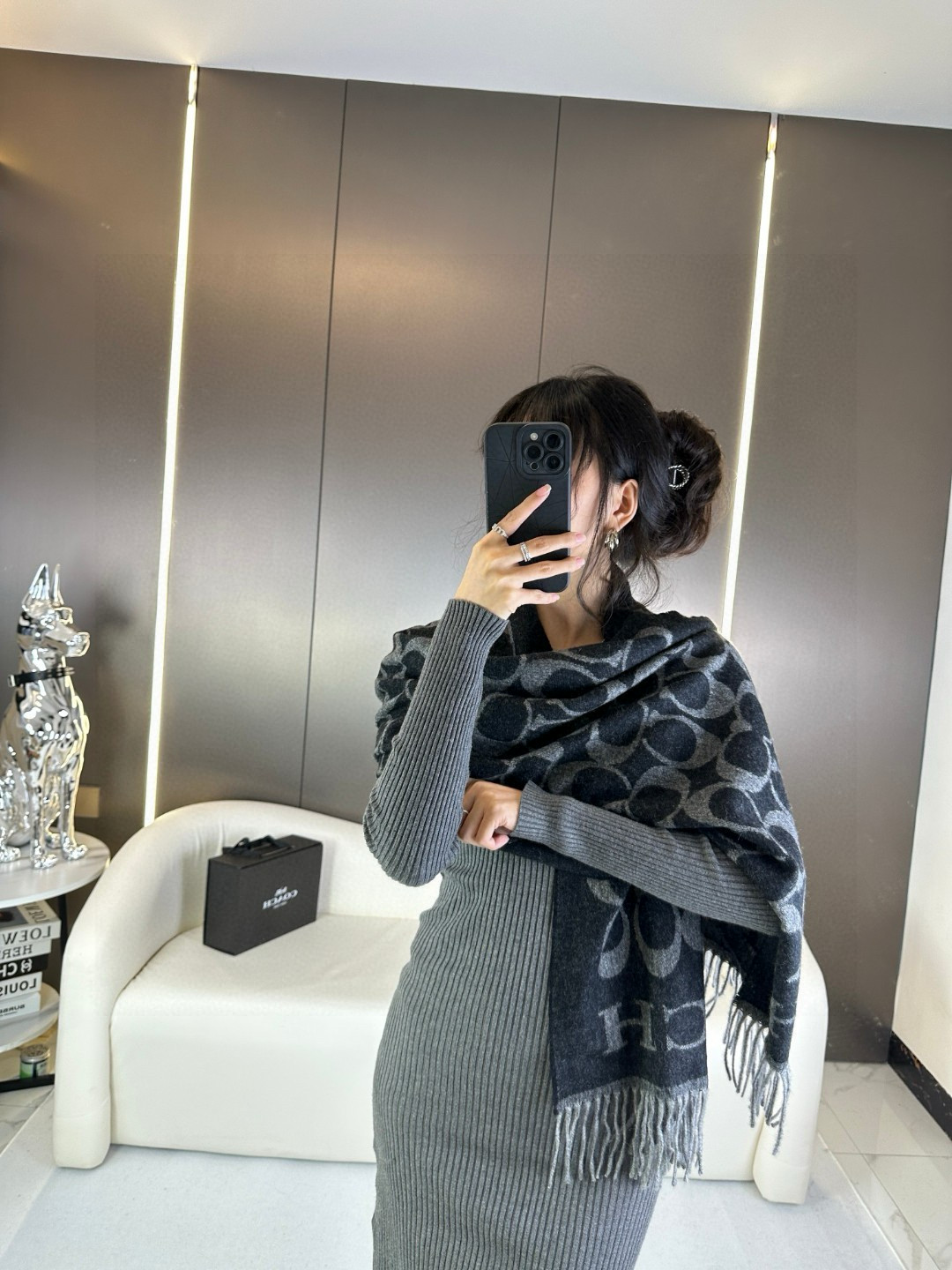 Coach's 2023 new arrival! Coach's hit product! The three-color shawl is so beautiful! It not only has looks but also quality, 97% wool + 3% cashmere, super soft and comfortable to the touch, dimensions 195×53cm, the overall width is decent, making it a small shawl. The front and back are complementary colors, one side has a dark logo on a light background, the other side is the opposite color. For autumn and winter scarves, you must go for this one!