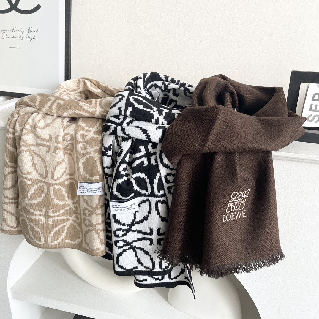 Hot style! Top-tier high-end [LOEWE direct supply for Dubai export!] Official website double-sided LOEWE 2024 new product. Double-sided cashmere scarf. High-end product. Top design from a fashionable big brand. You'll understand the really super great quality once you get it. Super soft, warm, and skin-friendly! So beautiful and stunning. Currently, this style is only available in a few overseas counters. Truly a rare, exquisite item. Customer-supplied cashmere material. Absolutely a high-end精品 that will be gone if you hesitate! Let's go!