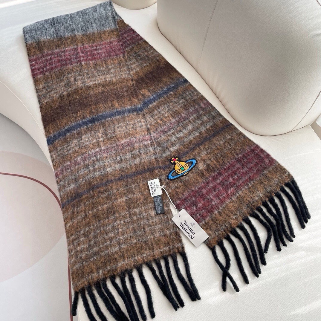 Classic large Saturn mohair scarf, Vivienne Westwood Saturn, British fashion designer, the punk mother of fashion! Fashion-forward style, strong quality, super beautiful design! Simple and elegant embroidered logo, exquisite. This style doesn’t have to worry about looking bad, because of the classic elements and stylish new design! The perfect choice for gifts, fully showcasing personal style. The quality is very high, the entire accessory gives a luxurious aura while being very delicate, elevating one's overall level. Definitely worth getting! Dimensions 30*180