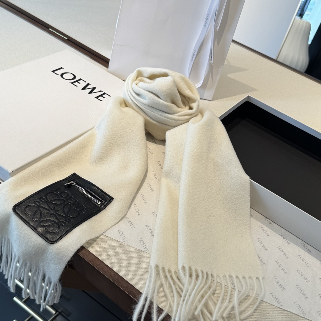 Original title: New arrival! Loewe - a rare gentle color scheme, low-key yet elegant. Key recommendation! Double-sided color scheme, one scarf with two styling options, high-end, comfortable, fashionable, and elegant. Known as a niche brand but with a strong luxury vibe, highly recommended! This Loewe scarf touches the heart with its delicate beauty. Extremely simple colors paired with an eye-catching leather tag—a highlight that doesn’t compromise aesthetics. The pursuit of successful individuals, color is absolutely perfect, with a unique ethereal charm. Definitely the ideal choice for couples. The colors are subtle, not flashy! Made of very soft wool. Dimensions: 30 x 180cm!