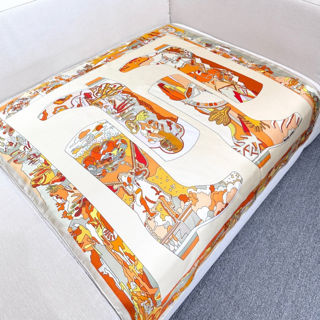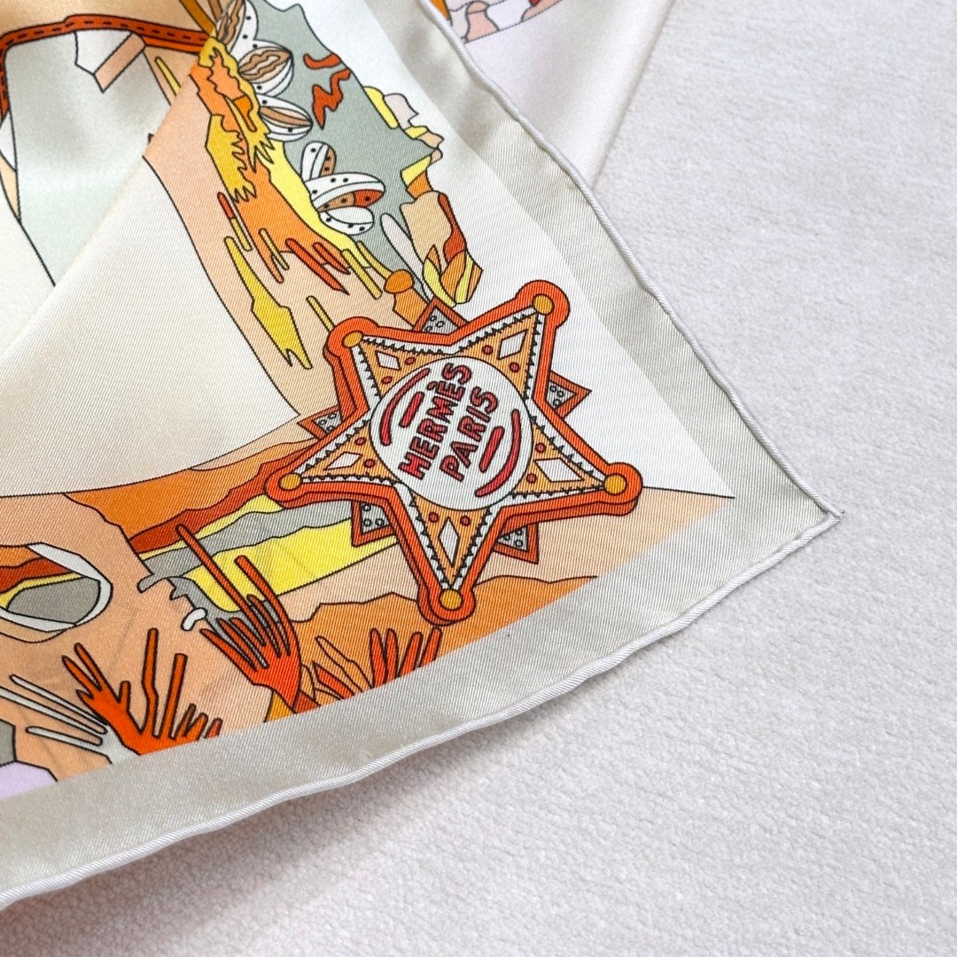 Design Inspiration: The design features cowboy boot elements, presenting a traditional symmetrical composition. The leather of the boots and the edges of the scarf are adorned with cacti, dunes, and sky elements in various colors, depicting the scorching scenery of Arizona. Has the Hermès rider also been deeply attracted, temporarily leaving Madison Avenue to come here and experience the charm of the American West?