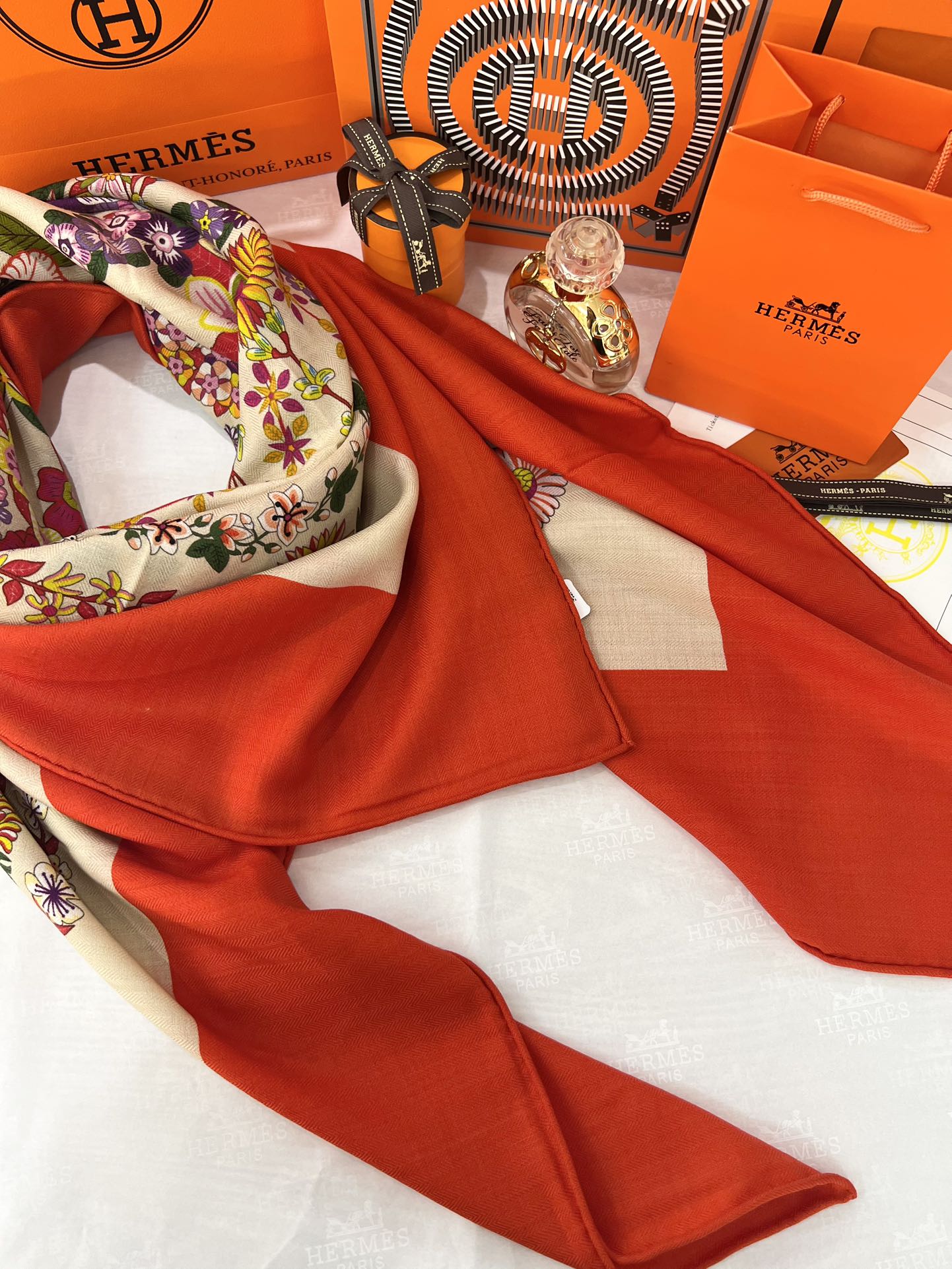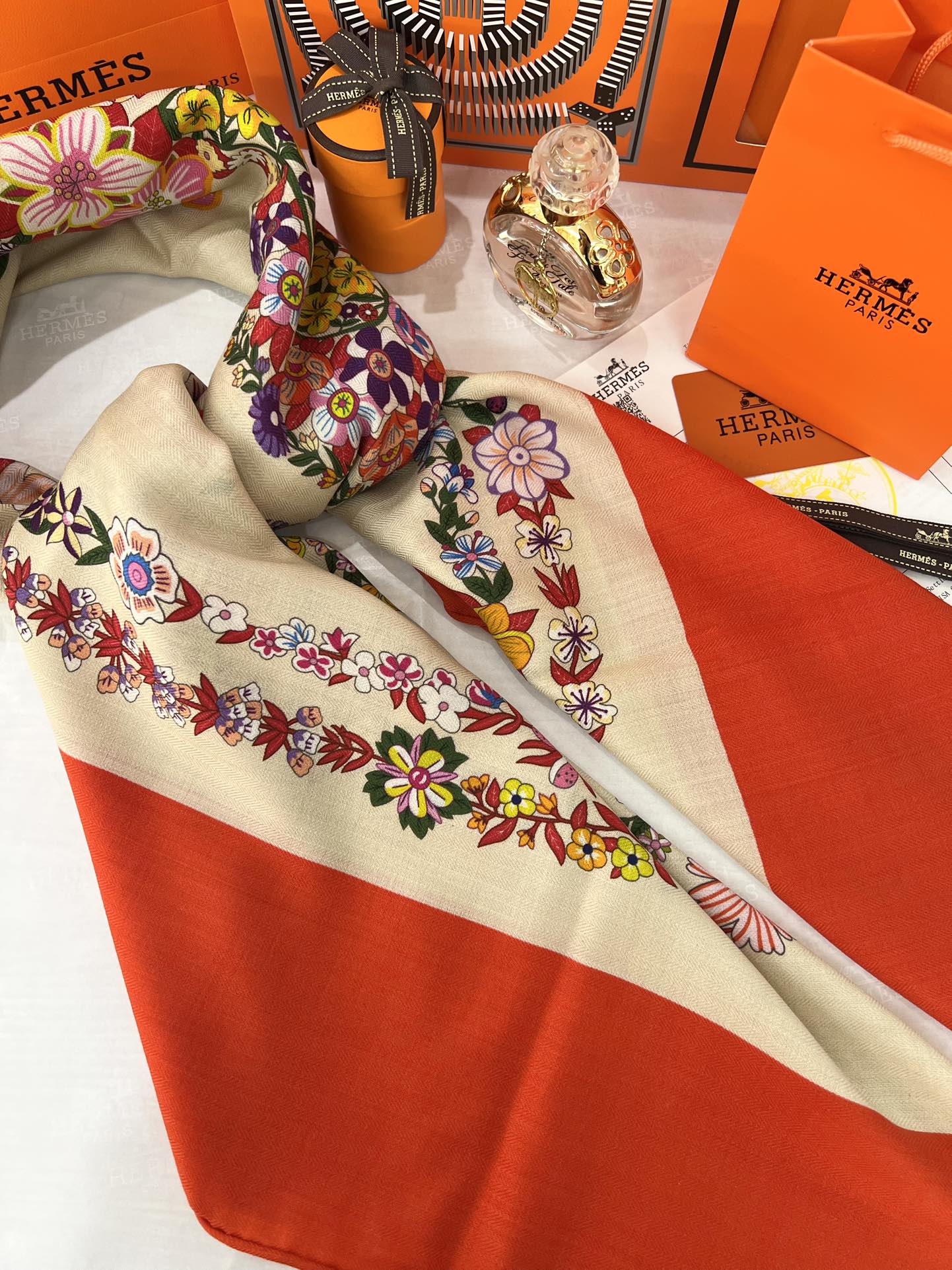Size: 140*140 cm | Due to the hand-rolled edge of this scarf, the marked size may vary slightly.