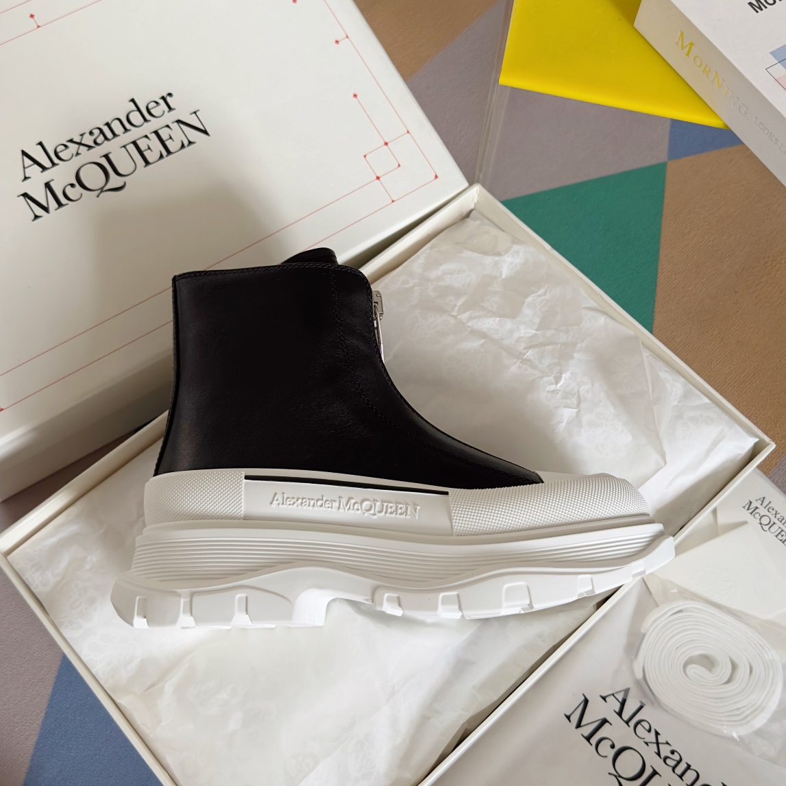 ALEXANDER MCQUEEN Tread Slick series platform lace-up zipper canvas shoes couples boots sock boots casual sneakers