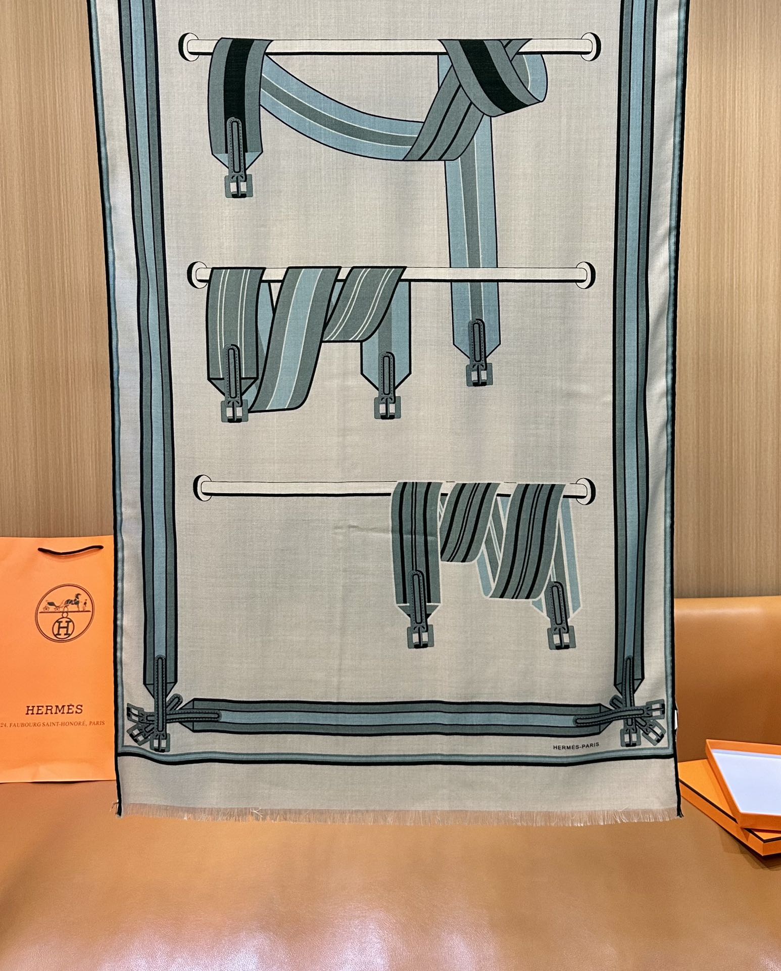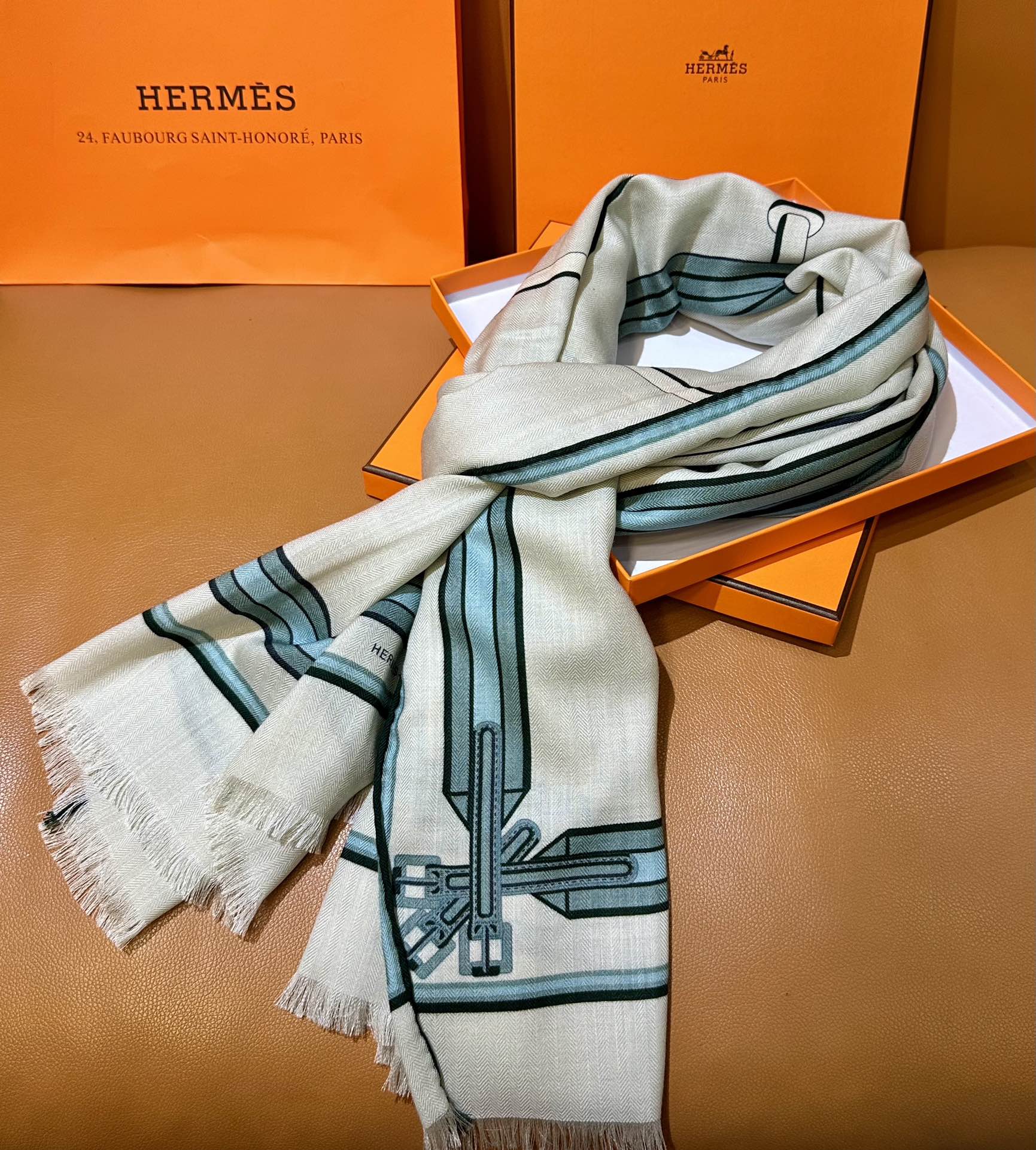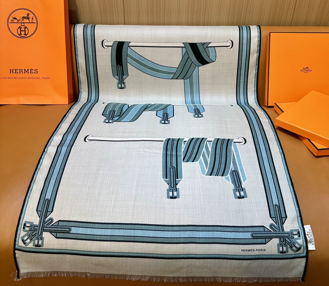 Highly recommended.. HERMES counter synchronized new arrival [Saddle Girth Long Scarf] silk and wool long scarf, exclusive high-end customer supply special channel, top-grade silk cashmere fabric. Just by looking at the quality, you can tell it's a product few factories can produce. New print series.... Highly recommended must-have versatile item. Wearing it gets 100 praises! 180*63cm👍70% cashmere + 30% silk