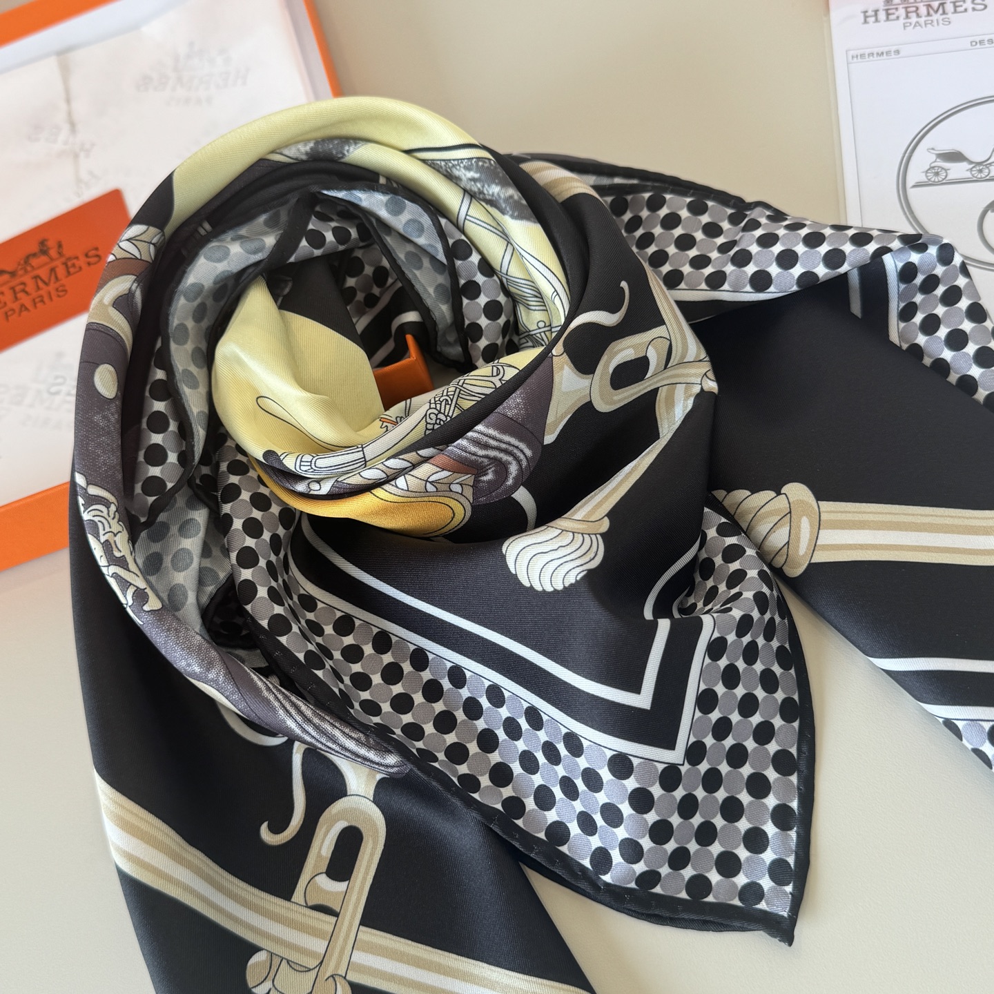 Hermès Scarf "Monsieur du Cab" is absolutely stunning, with a dreamy design that has become a masterpiece privately collected by countless collectors!