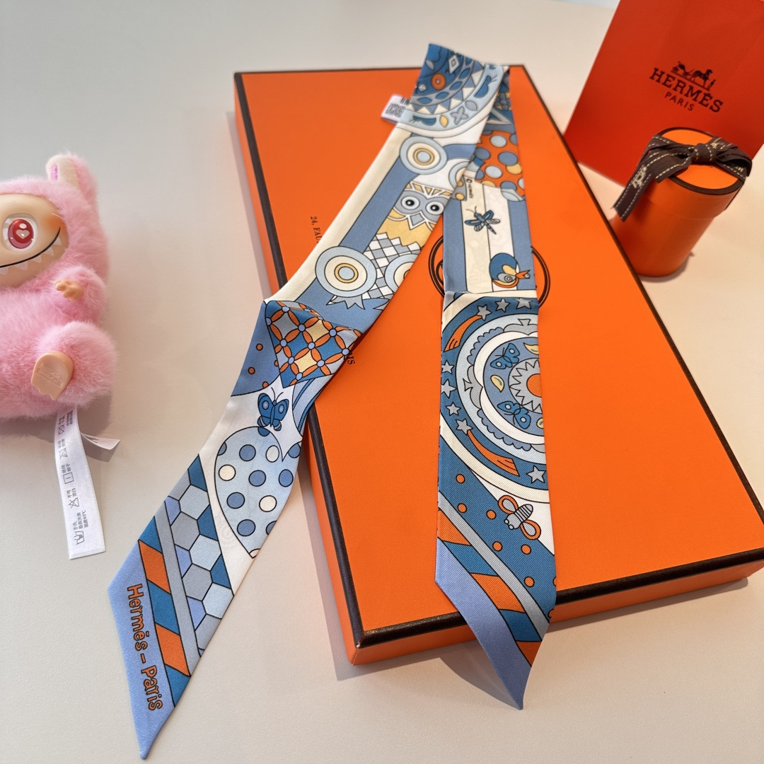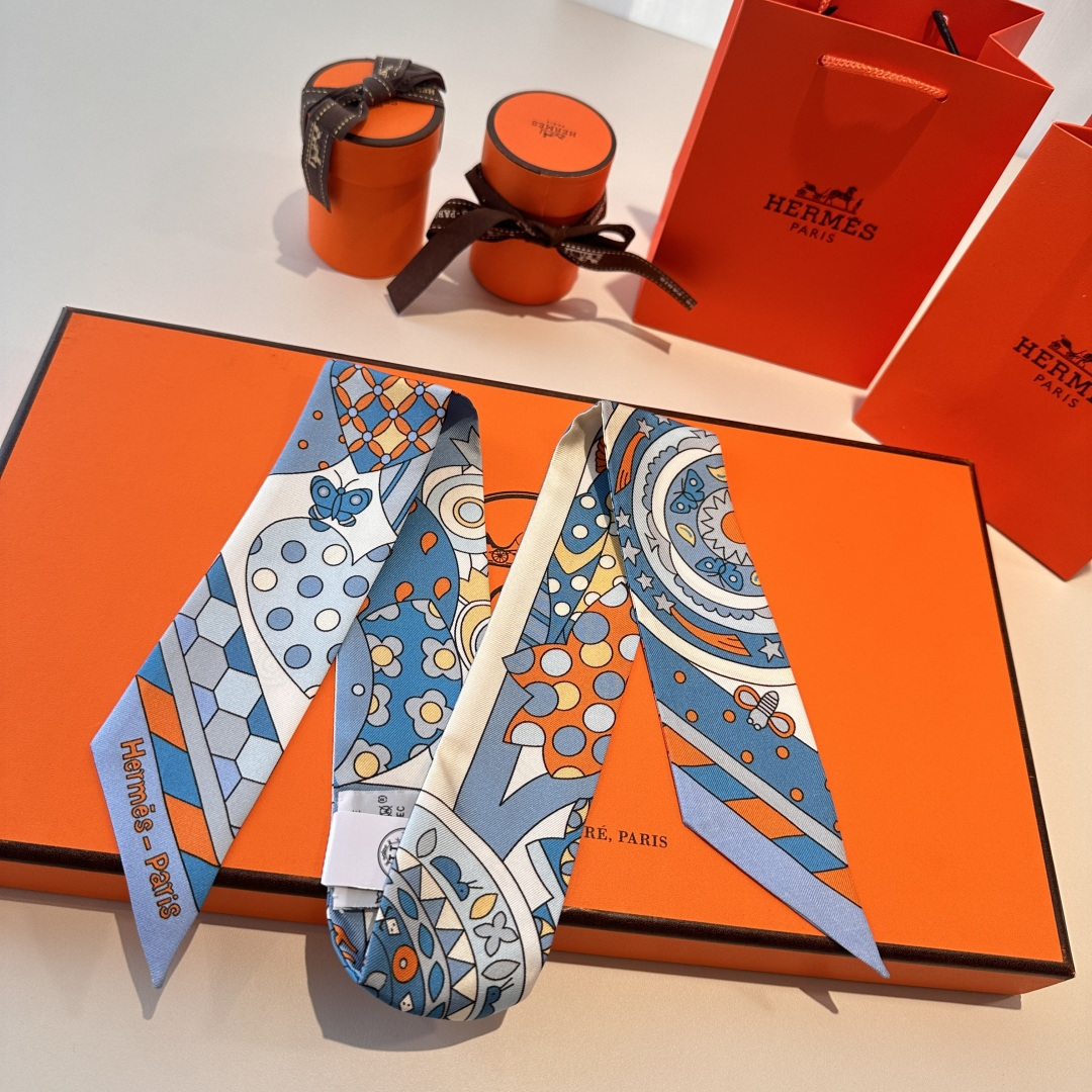 Best-selling Hermès twill silk (100% mulberry silk). This essential H accessory can be worn in multiple ways and pairs perfectly with any outfit. Whether tied around the neck, worn as a belt, hairband, or headscarf, it is always pleasing to the eye.